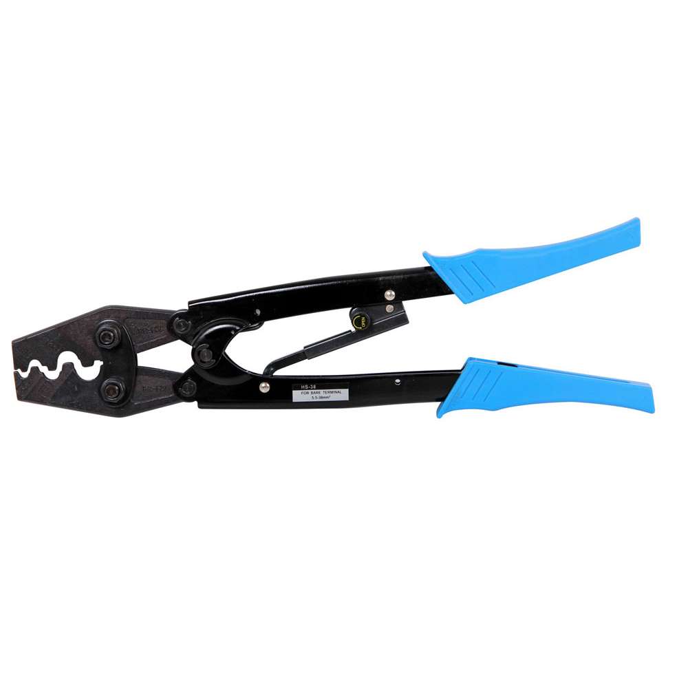Инструмент e.tool.crimp.hs.38.6.35 для обжимки неизолированных наконечников 5.5-35 кв.мм предназначен для обжимки медных и алюминиевых неизолированных кабельных наконечников.
