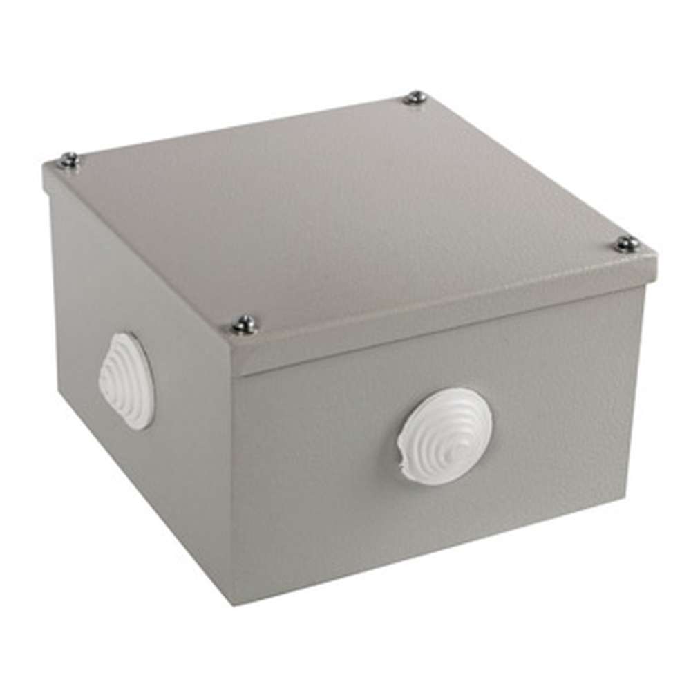Коробка распределительная металлическая e.db.stand.kr15.150.150.90.ip54 используется как элемент системы прокладки кабеля в металлических трубах, или в металлорукаве. Провода могут быть введены в коробку через уплотнительные сальники или можно использовать металлические вводы для трубы или металлорукава с диаметром 3/4 дюйма (? 26 мм)