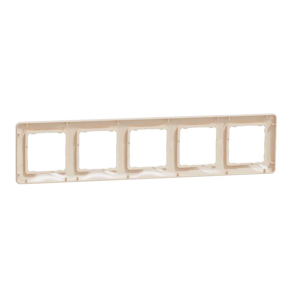 Пятипостовая рамка представляет собой аксессуар линии Sedna Design серии Sedna Design & Elements от Schneider Electric. Рамка имеет глянцевую поверхность бежевого цвета и имеет следующие размеры: ширина 370 мм, высота 85 мм, глубина 10 мм. Характеризуется степенью защиты IP20, а сама рамка изготовлена из термопластического материала с повышенной устойчивостью к УФ-излучению. Изделие монтируется поверхностно. Примечание: продукты Sedna Design & Elements несовместимы с серией Sedna!