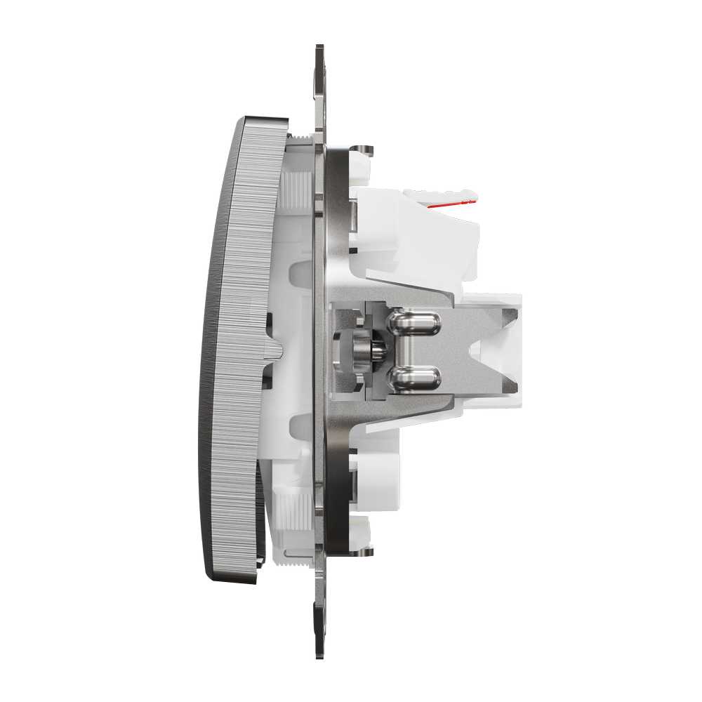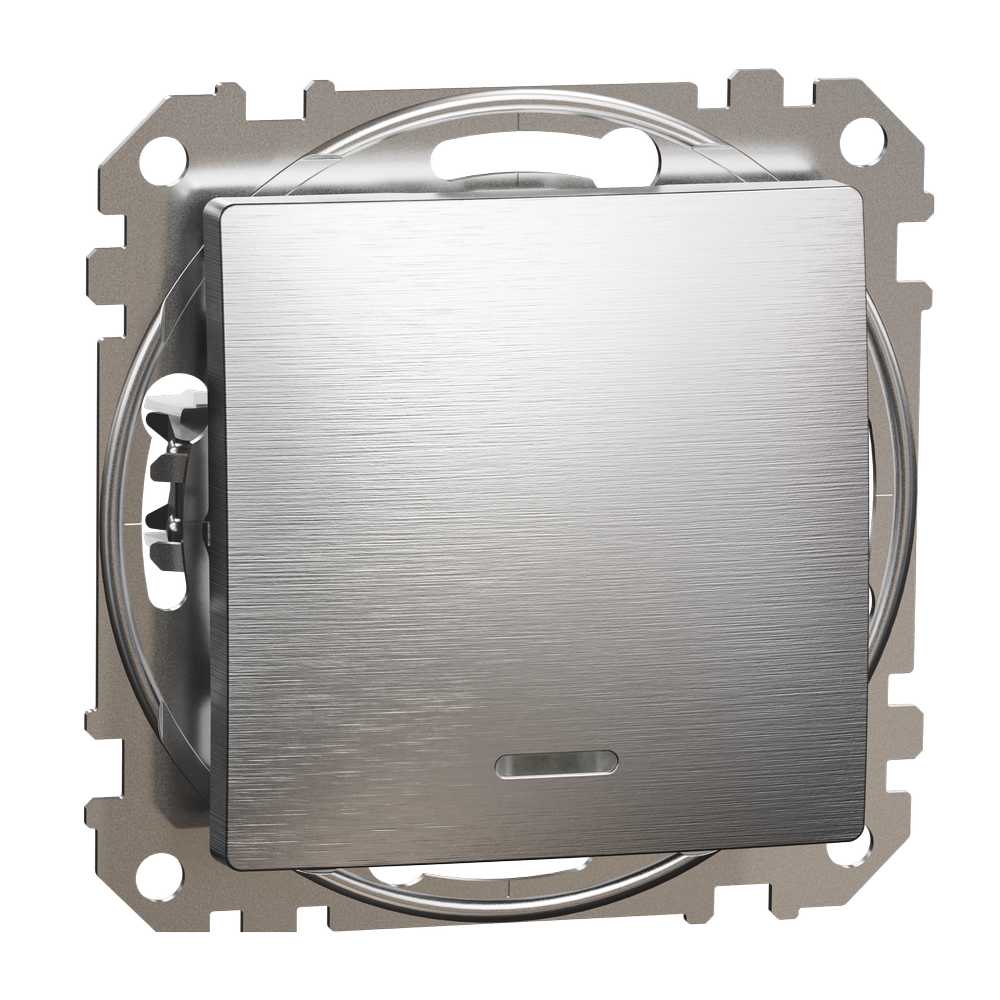 Одноклавишный 1-полюсный выключатель (механизм с суппортом) с подсветкой имеет матовую поверхность цвета Алюминий и такие размеры: ширина 73 мм, высота 73 мм, глубина 37 мм, глубина выступа 24 мм. Вес изделия: 0,061 кг. Будучи изготовлен из термопластического материала ABS-UV, этот выключатель достаточно надежен и устойчив. Глянцевая поверхность создает элегантность в комнате. Предусмотрен скрытый монтаж. Способ крепления выключателя – монтажные лапки, винты. Клеммы безвинтовые Степень защиты IP20. Имеет знак качества CE. Полное соответствие стандарту IEC 60669-1. Закругленный профиль создает иллюзию, что выключатель находится не заподлицо со стеной, а словно перед ней, что придает дизайну легкости и элегантности. Синяя LED подсветка загорается когда выключатель выключен. Примечание: продукты Sedna Design & Elements не совместимы с серией Sedna!