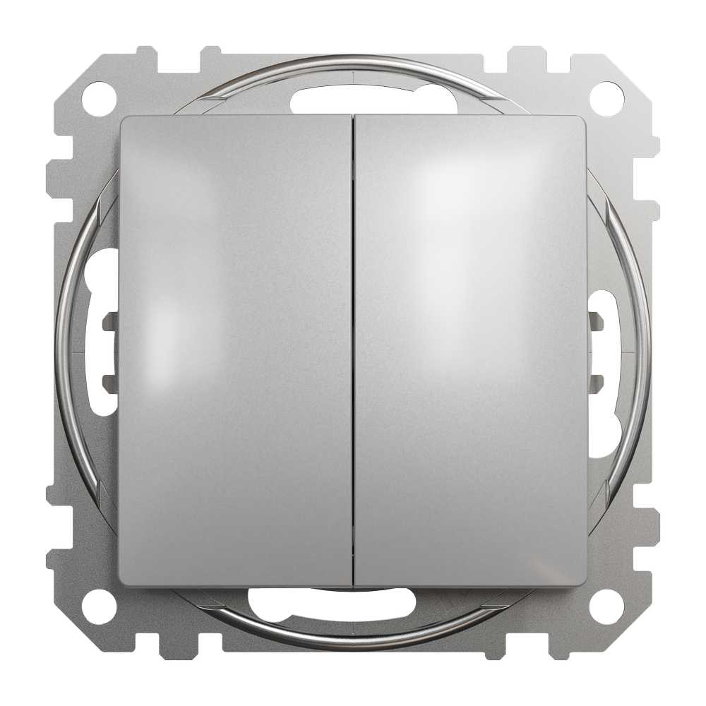 Двухклавишный переключатель Schneider Electric Sedna Design & Elements SDD111108 – это механизм с суппортом цвета Алюминия. Будучи изготовлен из термопластического материала ABS-UV, этот переключатель достаточно надежен и устойчив. Глянцевая поверхность создает элегантность в комнате. Ее ширина 73 мм, высота 73 мм, глубина 37 мм, глубина выступа 24 мм. Вес изделия: 0,061 кг. Клеммы безвинтовые. Предусмотрен скрытый монтаж. Способ крепления переключателя – монтажные лапки, винты. Степень защиты IP20. Имеет знак качества CE. Полное соответствие стандарту IEC 60669-1. Закругленный профиль создает иллюзию, что переключатель находится не заподлицо со стеной, а словно перед ней, что придает дизайну легкости и элегантности. Sedna – электрические переключатели нового поколения, соответствующие тенденциям моды и дизайна интерьера. Накладки и рамки можно комбинировать, чтобы они идеально подходили к любому стилю и оформлению Вашего дома.