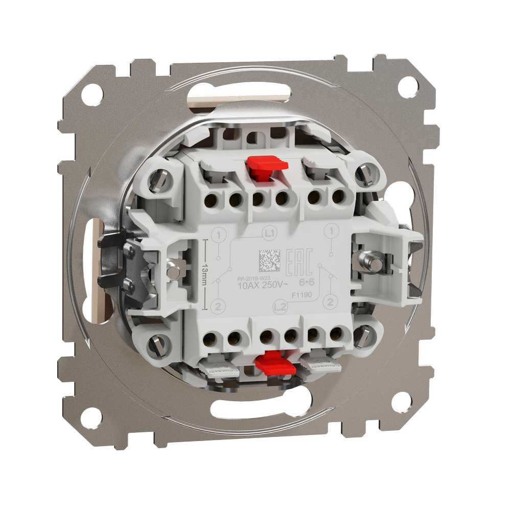 Двухклавишный переключатель Schneider Electric Sedna Design & Elements SDD111108 – это механизм с суппортом бежевого цвета. Будучи изготовлен из термопластического материала ABS-UV, этот переключатель достаточно надежен и устойчив. Глянцевая поверхность создает элегантность в комнате. Ее ширина 73 мм, высота 73 мм, глубина 37 мм, глубина выступа 24 мм. Вес изделия: 0,061 кг. Клеммы безвинтовые. Предусмотрен скрытый монтаж. Способ крепления переключателя – монтажные лапки, винты. Степень защиты IP20. Имеет знак качества CE. Полное соответствие стандарту IEC 60669-1. Закругленный профиль создает иллюзию, что переключатель находится не заподлицо со стеной, а словно перед ней, что придает дизайну легкости и элегантности. Sedna – электрические переключатели нового поколения, соответствующие тенденциям моды и дизайна интерьера. Накладки и рамки можно комбинировать, чтобы они идеально подходили к любому стилю и оформлению Вашего дома.