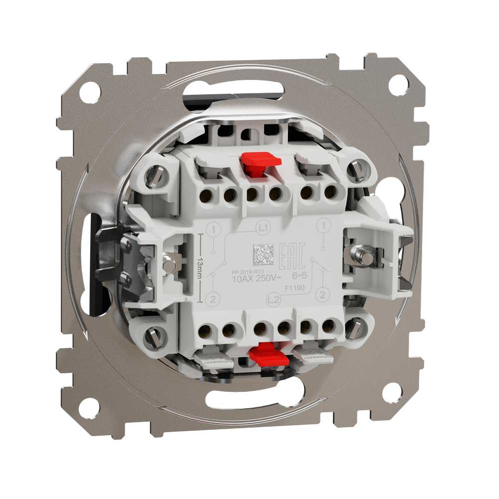 Двухклавишный переключатель Schneider Electric Sedna Design & Elements SDD111108 – это механизм с суппортом черного цвета. Будучи изготовлен из термопластического материала ABS-UV, этот переключатель достаточно надежен и устойчив. Глянцевая поверхность создает элегантность в комнате. Ее ширина 73 мм, высота 73 мм, глубина 37 мм, глубина выступа 24 мм. Вес изделия: 0,061 кг. Клеммы безвинтовые. Предусмотрен скрытый монтаж. Способ крепления переключателя – монтажные лапки, винты. Степень защиты IP20. Имеет знак качества CE. Полное соответствие стандарту IEC 60669-1. Закругленный профиль создает иллюзию, что переключатель находится не заподлицо со стеной, а словно перед ней, что придает дизайну легкости и элегантности. Sedna – электрические переключатели нового поколения, соответствующие тенденциям моды и дизайна интерьера. Накладки и рамки можно комбинировать, чтобы они идеально подходили к любому стилю и оформлению Вашего дома.