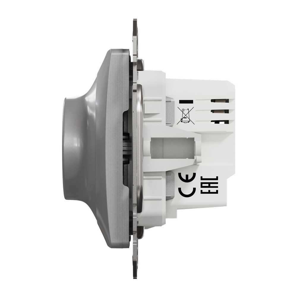 Універсальний поворотний димер для світлодіодних ламп є аксесуаром серії Sedna Design & Elements від Schneider Electric. Пристрій має глянцеву поверхню алюмінієвого кольору і має такі розміри: ширина 73 мм, висота 73 мм, глибина 55 мм, глибина виступу 24 мм. Диммер характеризується ступенем захисту IP20. Для виготовлення диммера використовувався термопластичний матеріал з підвищеною стійкістю до УФ-випромінювання. Виріб монтується впритул і має гвинтову клему. Примітка: продукти Sedna Design & Elements несумісні з серією Sedna!
