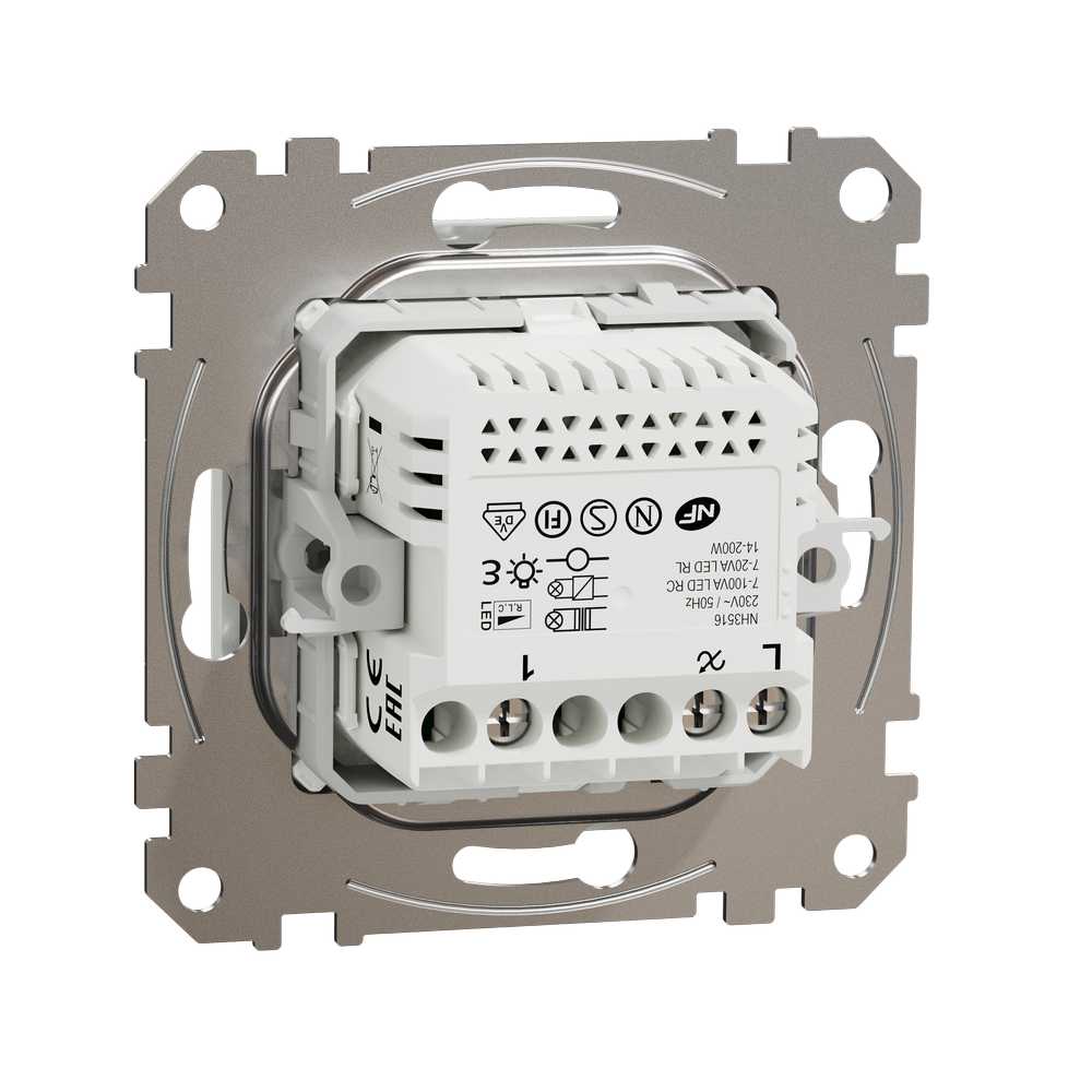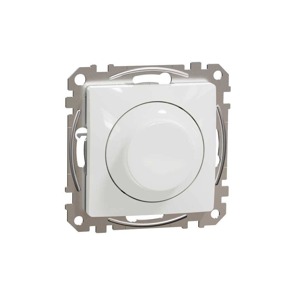 Універсальний поворотний димер для світлодіодних ламп є аксесуаром серії Sedna Design & Elements від Schneider Electric. Пристрій має глянцеву білу поверхню і має такі розміри: ширина 73 мм, висота 73 мм, глибина 55 мм, глибина виступу 24 мм. Диммер характеризується ступенем захисту IP20. Для виготовлення диммера використовувався термопластичний матеріал з підвищеною стійкістю до УФ-випромінювання. Виріб монтується впритул і має гвинтову клему. Примітка: продукти Sedna Design & Elements несумісні з серією Sedna!