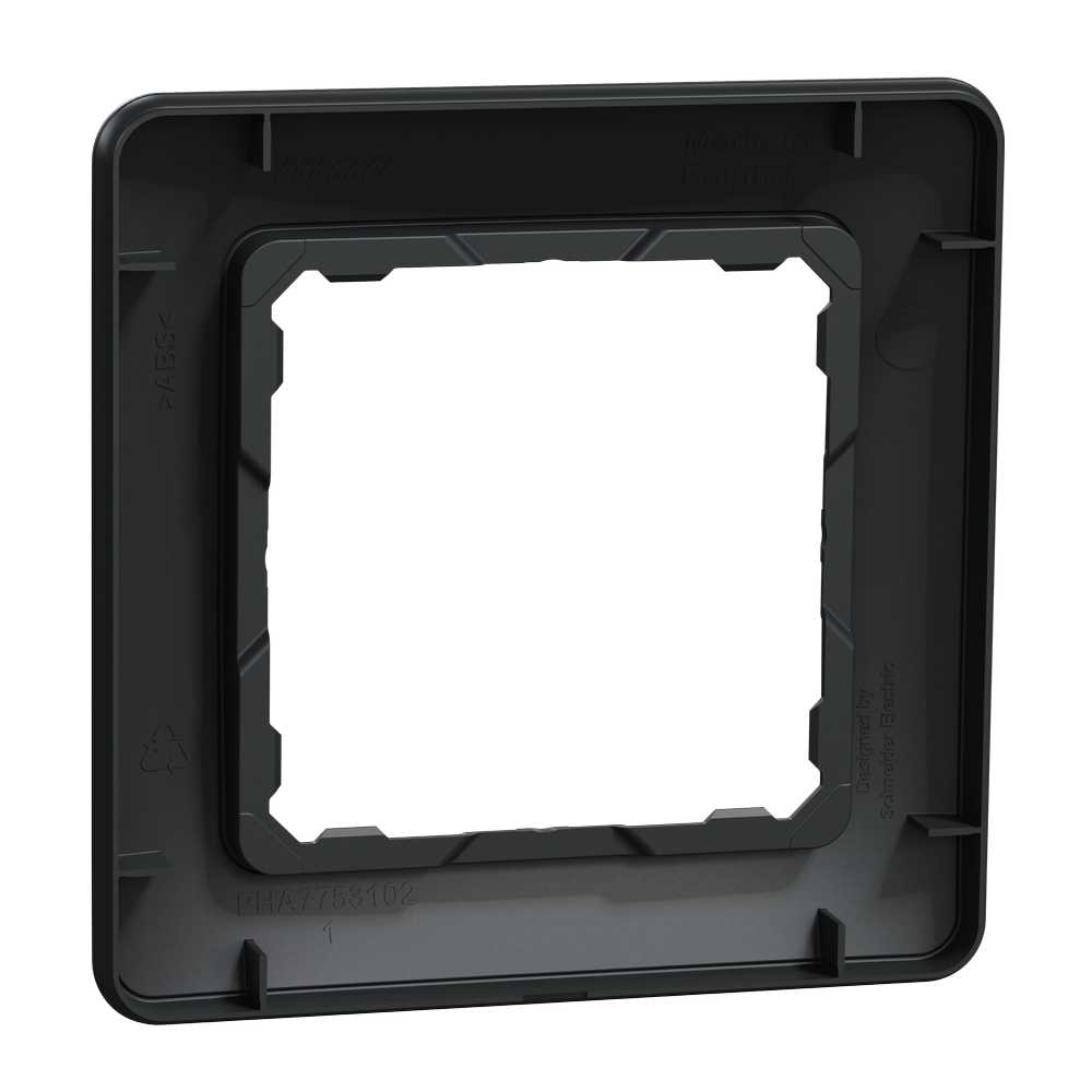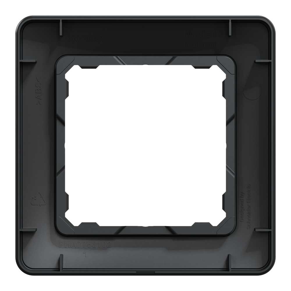Рамка Sedna Design 1-постова, чорного кольору, є аксесуаром лінії Sedna Design серії Sedna Design & Elements від Schneider Electric. 1-постова рамка має пофарбовану поверхню в колір чорного антрациту та такі розміри: ширина 85 мм, висота 85 мм, глибина 10 мм. Ступінь захисту IP20. Каркас виготовлений з термопластичного матеріалу з підвищеною стійкістю до УФ-випромінювання. Виріб монтується поверхнево. Примітка: продукти Sedna Design & Elements несумісні з серією Sedna!