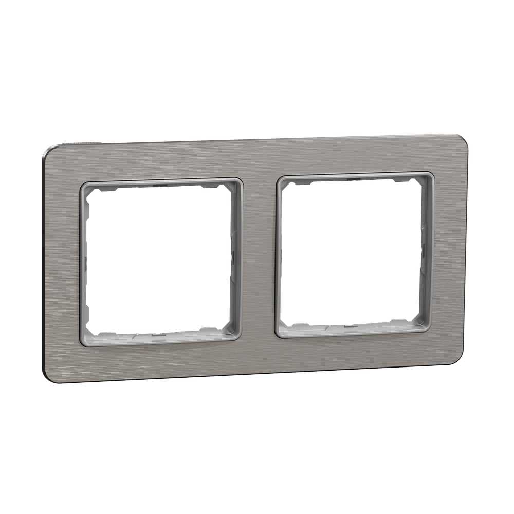 Двохпостова рамка є аксесуаром лінії Sedna Design серії Sedna Design & Elements від Schneider Electric. Рамка має матову поверхню кольору - алюміній, з ефектом штучного металу та має такі розміри: ширина 156 мм, висота 85 мм, глибина 10 мм. Характеризується ступенем захисту IP20 а сама рамка виготовлена з термопластичного матеріалу з підвищеною стійкістю до УФ-випромінювання, який ідеально імітує природні матеріали. Виріб монтується поверхнево. Примітка: продукти Sedna Design & Elements несумісні з серією Sedna!