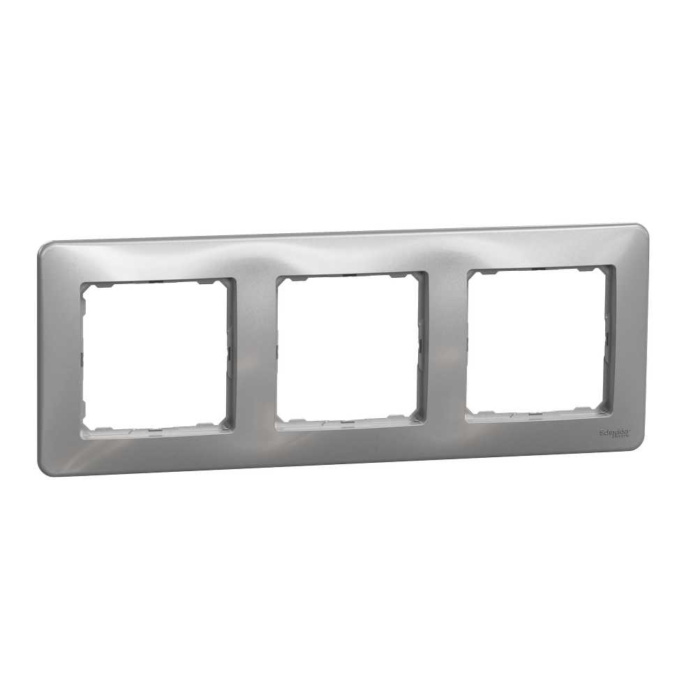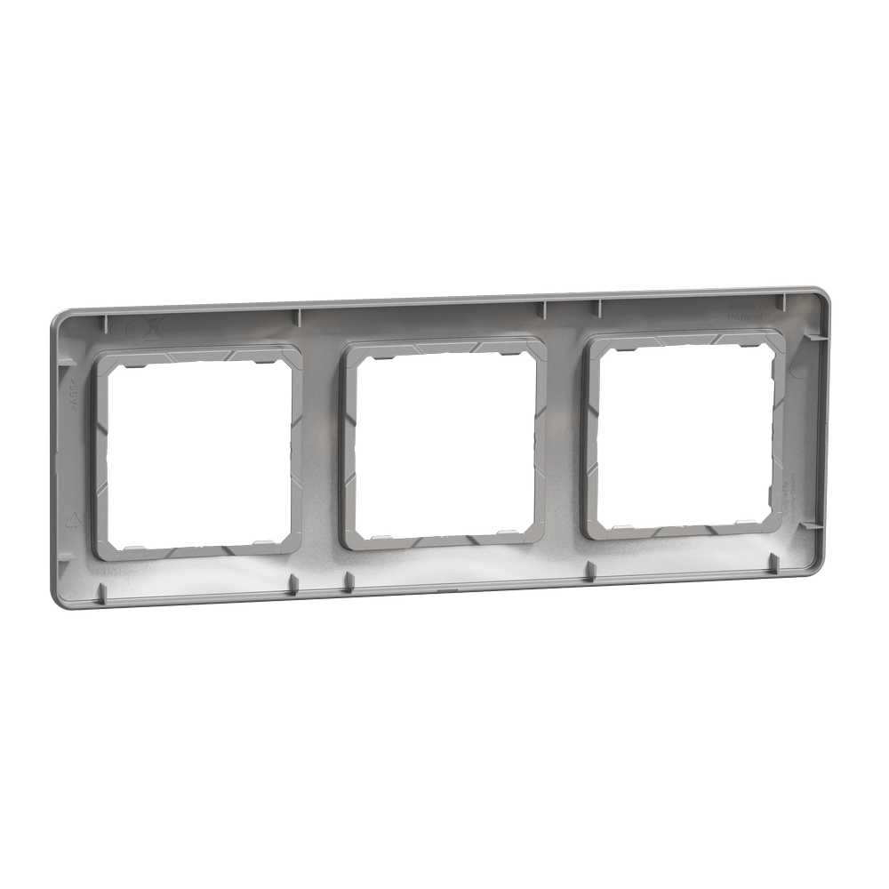 Рамка Sedna Design 3-постова є аксесуаром лінії Sedna Design серії Sedna Design & Elements від Schneider Electric. 3-постова рамка має пофарбовану поверхню в колір сріблястого алюмінія та такі розміри: ширина 156 мм, висота 85 мм, глибина 10 мм. Ступінь захисту IP20. Каркас виготовлений з термопластичного матеріалу з підвищеною стійкістю до УФ-випромінювання. Виріб монтується поверхнево. Примітка: продукти Sedna Design & Elements несумісні з серією Sedna!