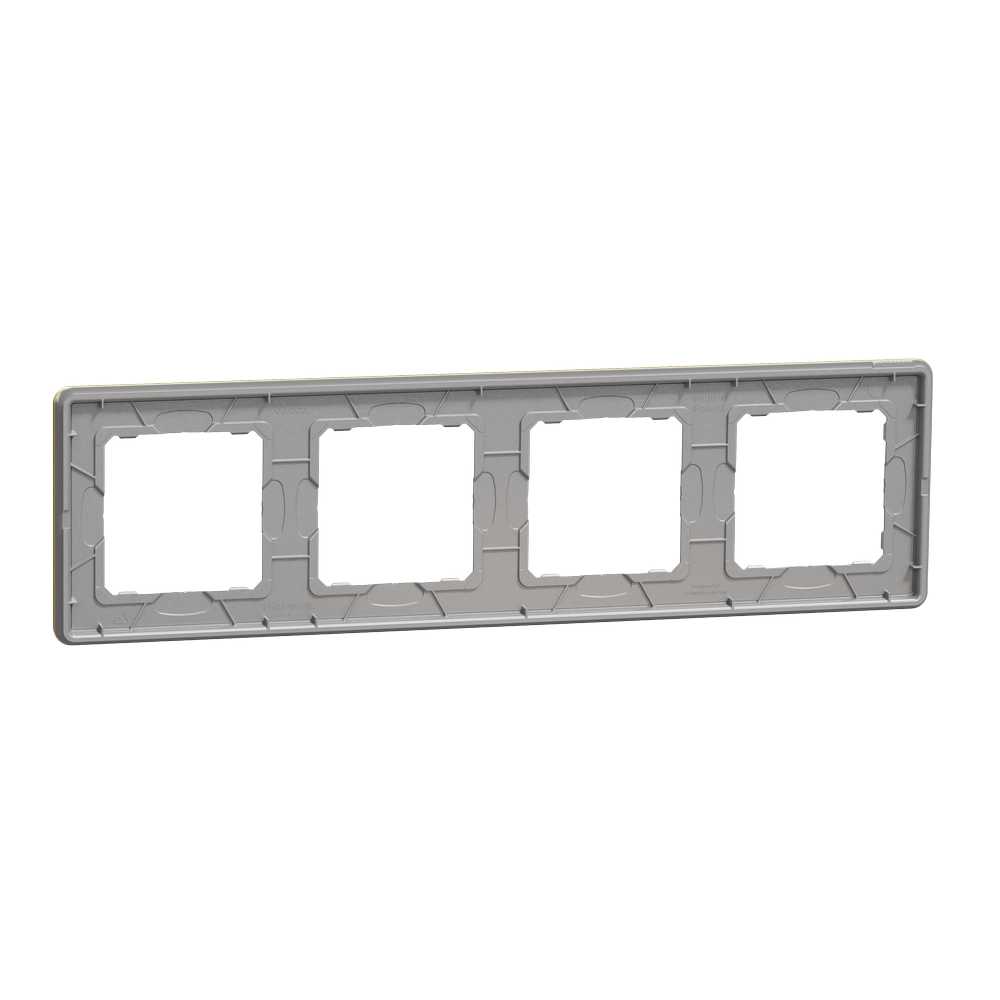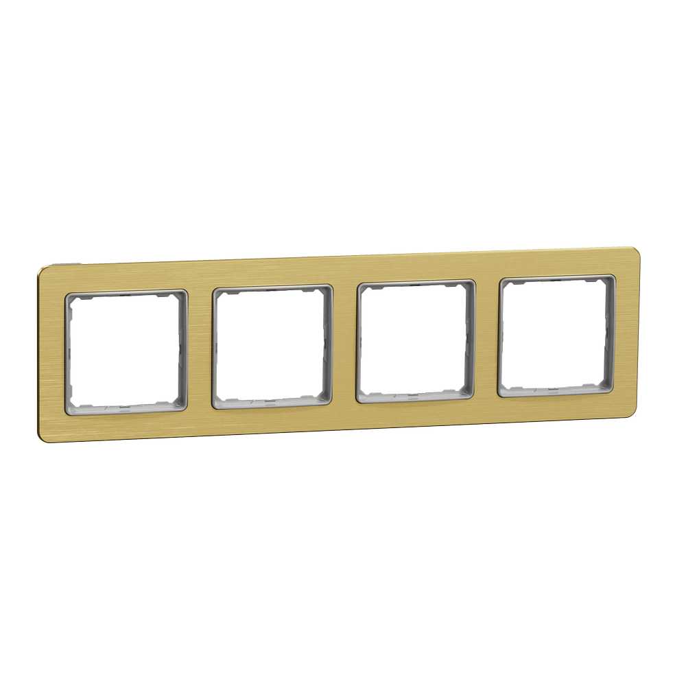 Чотирьохпостова рамка є аксесуаром лінії Sedna Design серії Sedna Design & Elements від Schneider Electric. Рамка має сатинову поверхню кольору матового золота, з ефектом металу та має такі розміри: ширина 298 мм, висота 85 мм, глибина 10 мм. Характеризується ступенем захисту IP20 а сама рамка виготовлена з термопластичного матеріалу з підвищеною стійкістю до УФ-випромінювання, який ідеально імітує природні матеріали. Виріб монтується поверхнево. Примітка: продукти Sedna Design & Elements несумісні з серією Sedna!