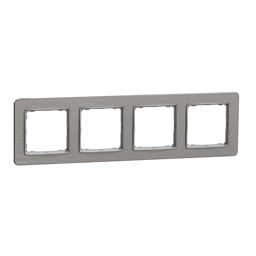 Чотирьохпостова рамка є аксесуаром лінії Sedna Design серії Sedna Design & Elements від Schneider Electric. Рамка має матову поверхню кольору - алюміній, з ефектом штучного металу та має такі розміри: ширина 298 мм, висота 85 мм, глибина 10 мм. Характеризується ступенем захисту IP20 а сама рамка виготовлена з термопластичного матеріалу з підвищеною стійкістю до УФ-випромінювання, який ідеально імітує природні матеріали. Виріб монтується поверхнево. Примітка: продукти Sedna Design & Elements несумісні з серією Sedna!