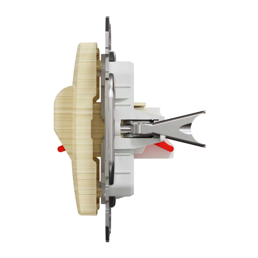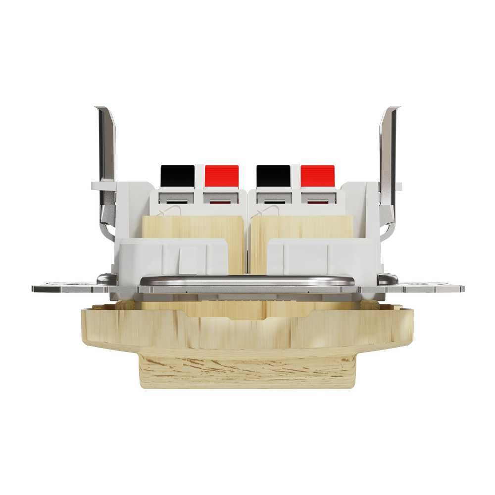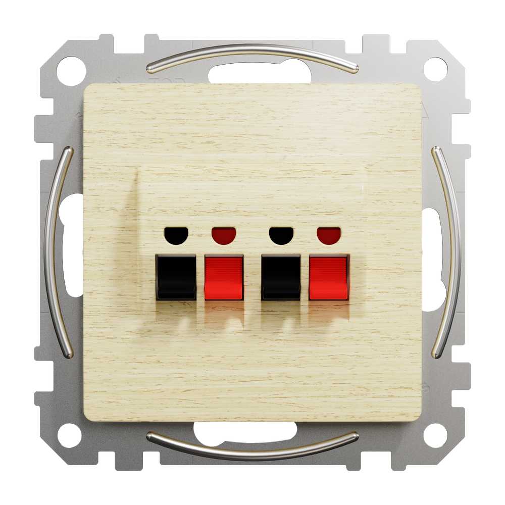 Подвійна аудіо-розетка, кольору Береза, з ефектом натурального дерева, є аксесуаром серії Sedna Design & Elements від Schneider Electric. Подвійна аудіо-розетка має сатиновану накладку кольору Береза і має такі розміри: ширина 73 мм, висота 73 мм, глибина 52 мм, глибина виступу 31 мм. Довжина ізоляції, знятої з кабелю, становить 7 мм. Розетка характеризується ступенем захисту IP20. Накладка розетки виготовлена ??з термопластичного матеріалу з підвищеною стійкістю до УФ-випромінювання, який ідеально імітує натуральні матеріали. Виріб монтується впритул і має безгвинтові клеми. Примітка: продукти Sedna Design & Elements несумісні з серією Sedna!