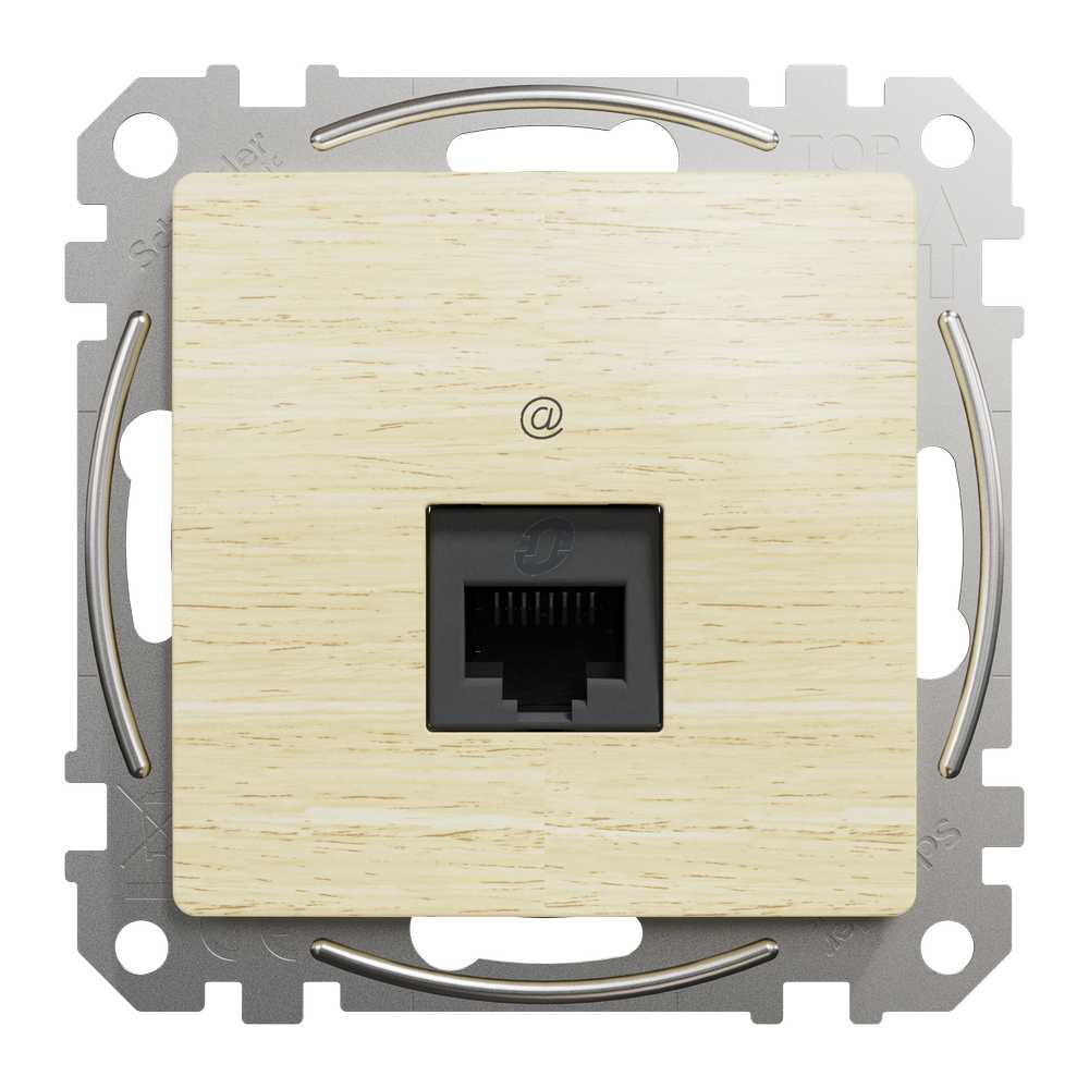 Однопостова комп’ютерна розетка RJ45 cat.5e UTP є аксесуаром серії Sedna Design & Elements від Schneider Electric. Комп'ютерна розетка має сатинову поверхню кольору Береза і має такі розміри: ширина 73 мм, висота 73 мм, глибина 35 мм, глибина виступу 13 мм. Розетка характеризується ступенем захисту IP20. Розетка виготовлена ??з термопластичного матеріалу з підвищеною стійкістю до УФ-випромінювання, який ідеально імітує натуральні матеріали. Виріб монтується впритул. Примітка: продукти Sedna Design & Elements несумісні з серією Sedna!