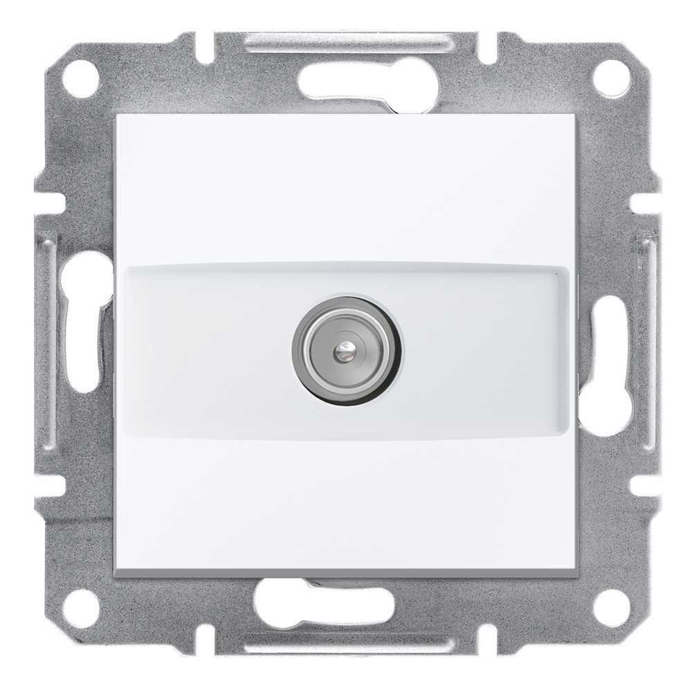 Розетка TV Schneider Electric Asfora EPH3270121 механізм із супортом та накладкою білого кольору. Тип телевізійної розетки - кінцева, відповідний штекерний роз'єм МЕК 9,52 мм. Фіксація пристрою за допомогою монтажних лапок. Розміри розетки: (Ш) 71 мм x (В) 71 мм x (Г) 38 мм, глибина встановлення 10 мм. Пристрій може бути встановленний приховано. Поверхня розетки глянцева, що надає приміщенню елегантного та вишуканого вигляду. Ступінь захисту IP20. Оснащена безгвинтовими клемами. Розетка виготовлена з ABS (акрилонітрил-бутадієн-стирол) матеріалу, що робить її максимально стійкою. Має знак якості CE. Оновлена фурнітура Asfora тепер має менші, компактніші накладки, профільовану фіксуючу рамку, а також широкі, профільовані монтажні лапки з поворотною пружиною, тим самим покращуючи якість та функціональність пристроїв. Продукція Asfora виготовлена з високоякісних матеріалів, які не жовтіють з часом. Витончений, елегантний дизайн ідеально гармонує з будь-яким інтер'єром.