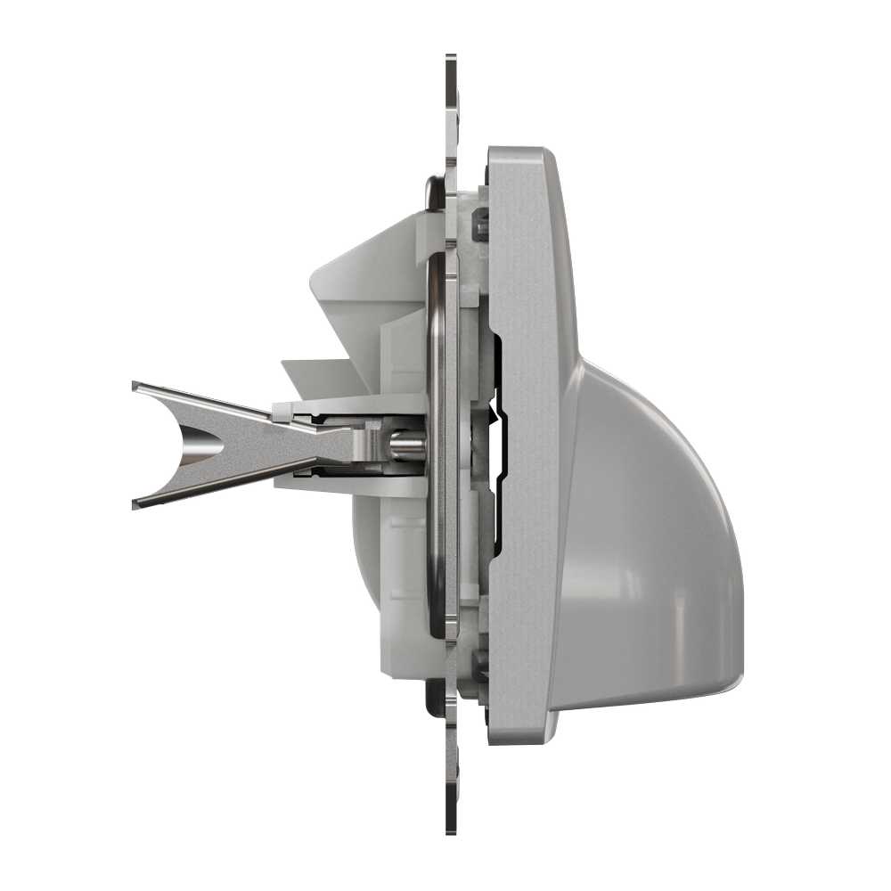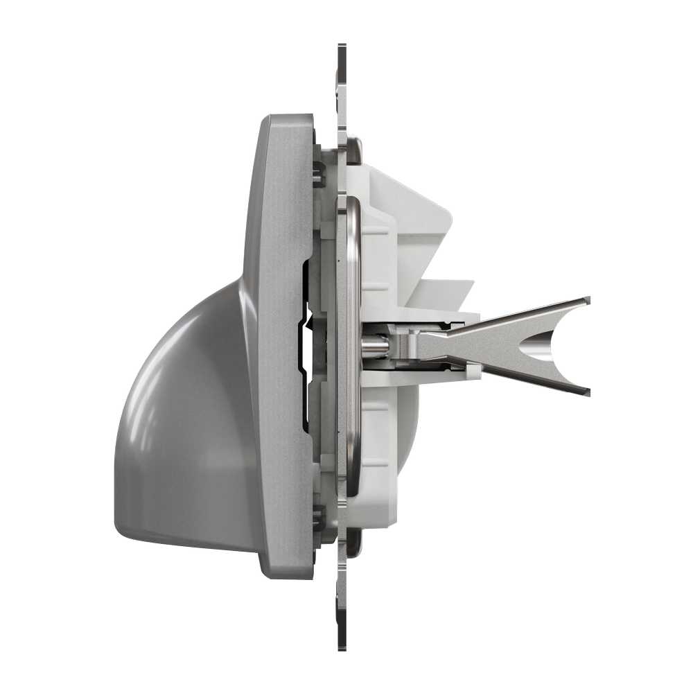Розетка для виводу кабелю, кольору Алюміній, є аксесуаром серії Sedna Design & Elements від Schneider Electric. Накладка розетки має сріблясто-алюмінієву поверхню та має такі розміри: ширина 73 мм, висота 58 мм, глибина 73 мм, глибина виступу 31 мм. Довжина ізоляції, знятої з кабелю, становить 13 мм. Розетка характеризується ступенем захисту IP20. Для виготовлення вкладки використовувався термопластичний матеріал з підвищеною стійкістю до УФ-випромінювання. Виріб монтується впритул і має безгвинтові клеми. Примітка: продукти Sedna Design & Elements несумісні з серією Sedna!