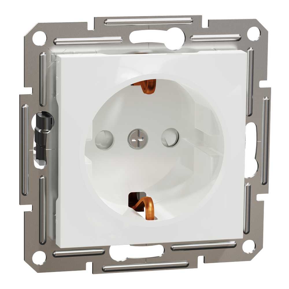 Розетка Schneider Electric Asfora EPH2970221, механізм із супортом та накладкою білого кольору. Конфігурація полюсів 2P + E, розетка оснащена шторками та боковим заземленням. Фіксація пристрою за допомогою гвинтів та монтажних лапок. Номінальний струм 16А, діапазон потужності 3680 Вт. Розміри вимикача: (Ш) 71 мм x (В) 71 мм x (Г) 42 мм, глибина встановлення 10 мм. Пристрій може бути встановленний приховано. Поверхня розетки глянцева, що надає приміщенню елегантного та вишуканого вигляду. Ступінь захисту IP20. Оснащена самозатискними клемами. Розетка виготовлена з ABS (акрилонітрил-бутадієн-стирол) матеріалу, що робить її максимально стійкою. Мідний провідниковий матеріал забезпечує надійність. Має сертифікати TSE, VDE. Оновлена фурнітура Asfora тепер має менші, компактніші накладки, профільований супорт, а також широкі, профільовані монтажні лапки з поворотною пружиною, тим самим покращуючи якість та функціональність пристроїв. Продукція Asfora виготовлена з високоякісних матеріалів, які не жовтіють з часом. Витончений, елегантний дизайн ідеально гармонує з будь-яким інтер'єром.