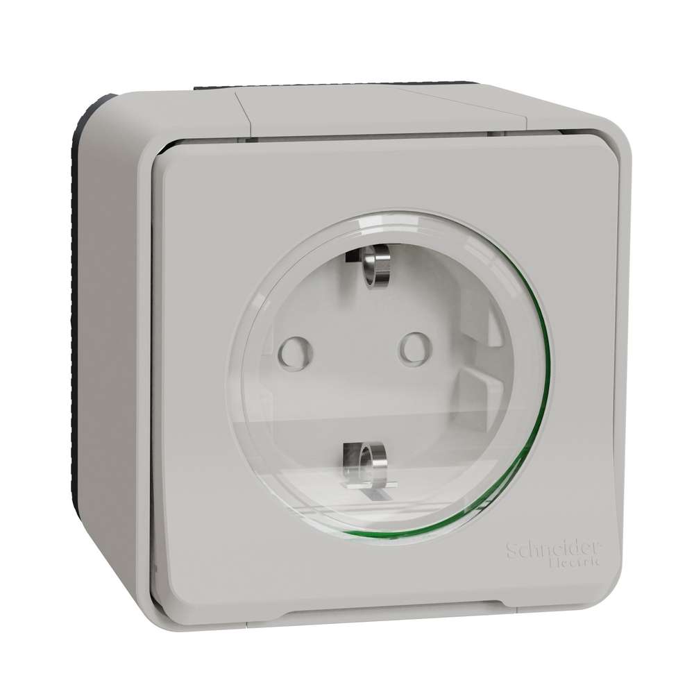 Розетка з заземленням та шторками IP55, біла, для поверхневого монтажу Mureva Styl Schneider Electric MUR39034