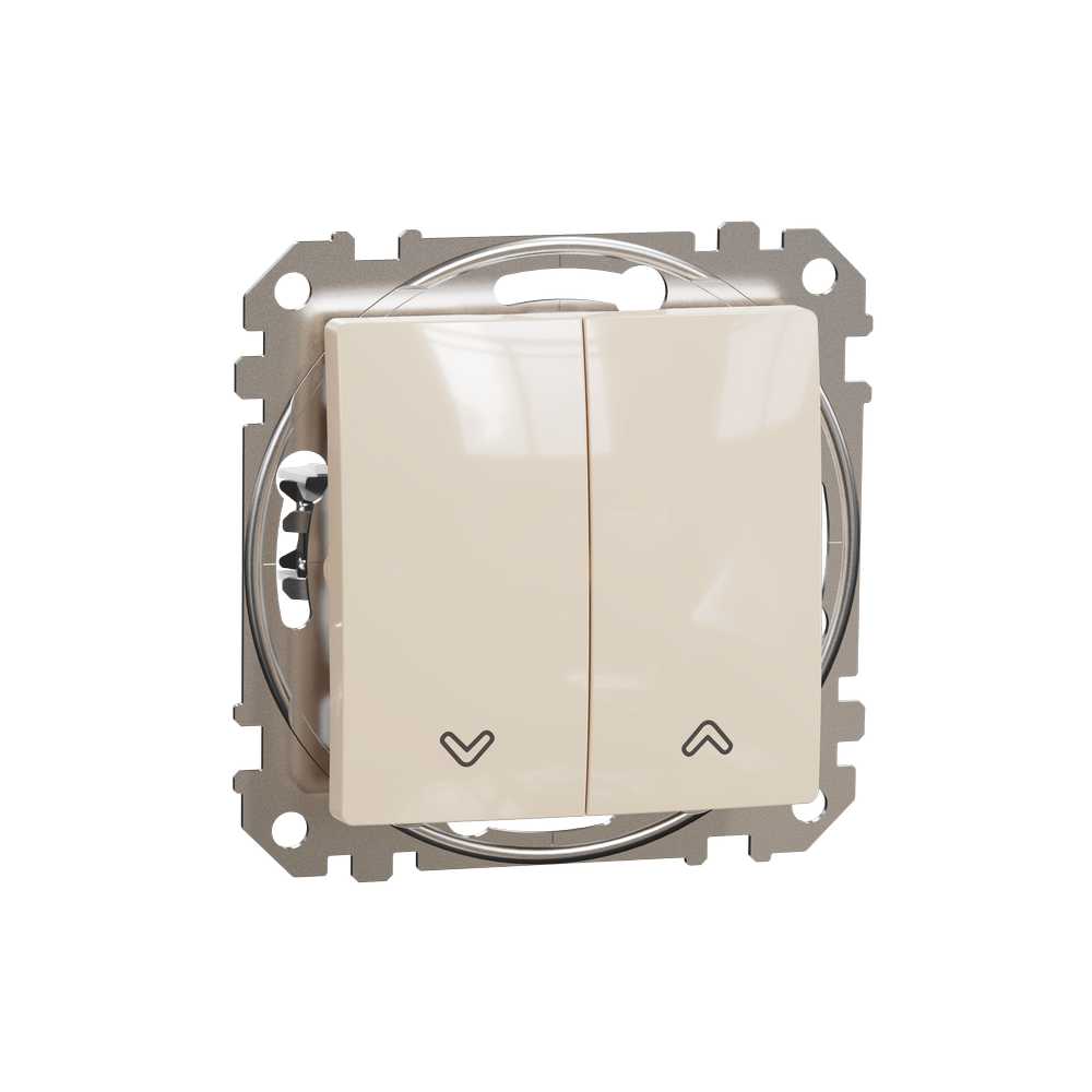 Вимикач для жалюзі ( в комплекті механізм+накладка+супорт) є аксесуаром серії Sedna Design & Elements від Schneider Electric. Накладка вимикача має глянцеву поверхню бежевого кольору та має такі розміри: ширина 73 мм, висота 73 мм, глибина 37 мм, глибина виступу 24 мм. Довжина ізоляції, знятої з кабелю, становить 13 мм. Вимикач характеризується ступенем захисту IP20 і діапазоном потужності 2300 Вт. Для виготовлення вимикача використовувався термопластичний матеріал з підвищеною стійкістю до УФ-випромінювання. Виріб монтується впритул і має безгвинтові клеми. Примітка: продукти Sedna Design & Elements несумісні з серією Sedna!