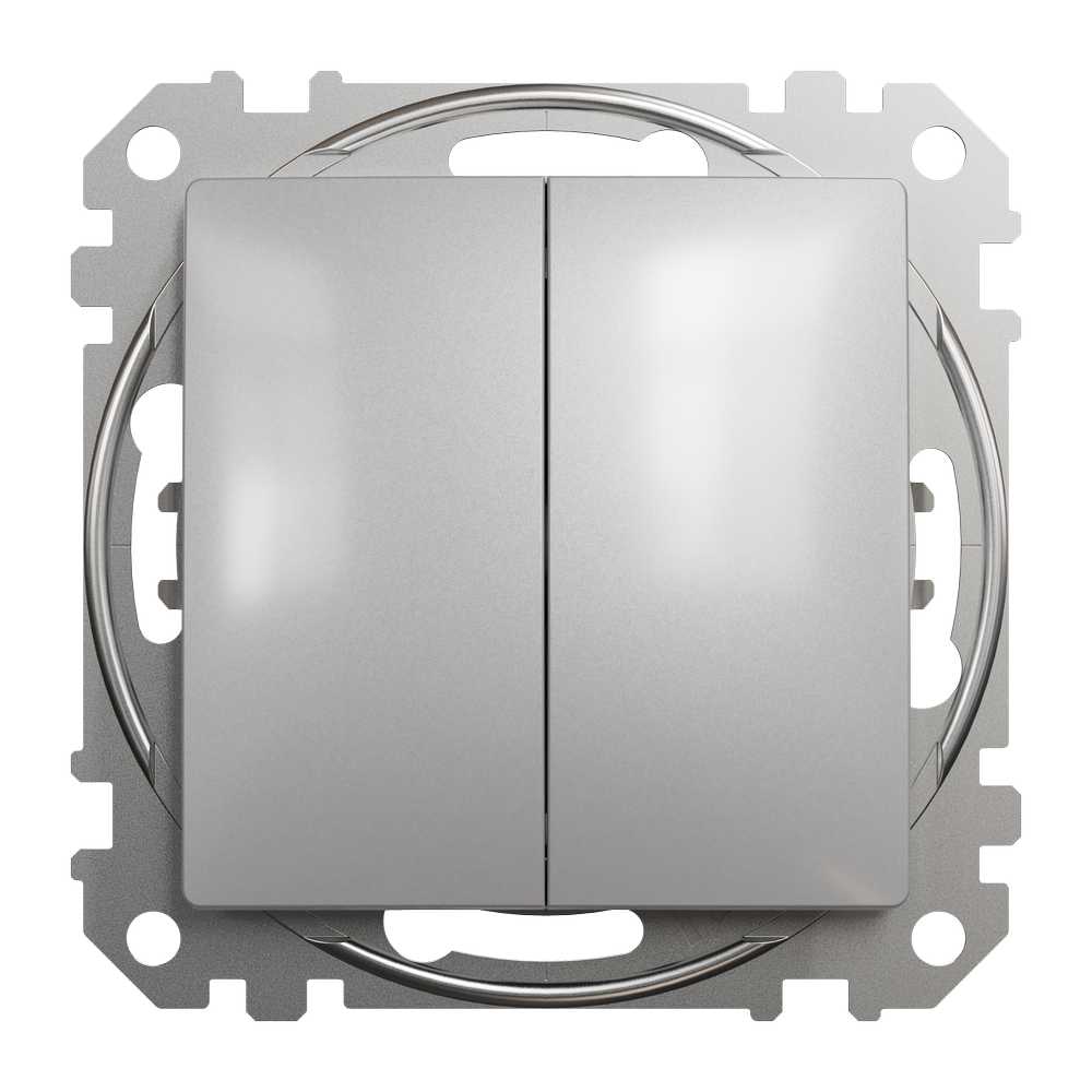Двохклавішний вимикач (механізм з супортом) має глянцеву поверхню кольору Алюміній та такі розміри: ширина 73 мм, висота 73 мм, глибина 37 мм, глибина виступу 24 мм. Вага виробу 0,061 кг. Будучи виготовленим із термопластичного матеріалу ABS-UV, цей вимикач досить надійний і стійкий. Глянцева поверхня створює відчуття елегантності в кімнаті. Передбачено прихований монтаж. Спосіб кріплення вимикача - монтажні лапки, гвинти. Клеми безгвинтові Ступінь захисту IP20. Має знак якості CE. Повна відповідність стандарту IEC 60669-1. Закруглений профіль створює ілюзію, що вимикач знаходиться не врівень зі стіною, а наче перед нею, що додає дизайну легкості та елегантності. Sedna - електричні вимикачі нового покоління, які відповідають тенденціям моди та дизайну інтер’єру. Накладки та рамки можна комбінувати, щоб вони ідеально пасували до будь-якого стилю та оформлення Вашого дому. Примітка: продукти Sedna Design & Elements не сумісні з серією Sedna!