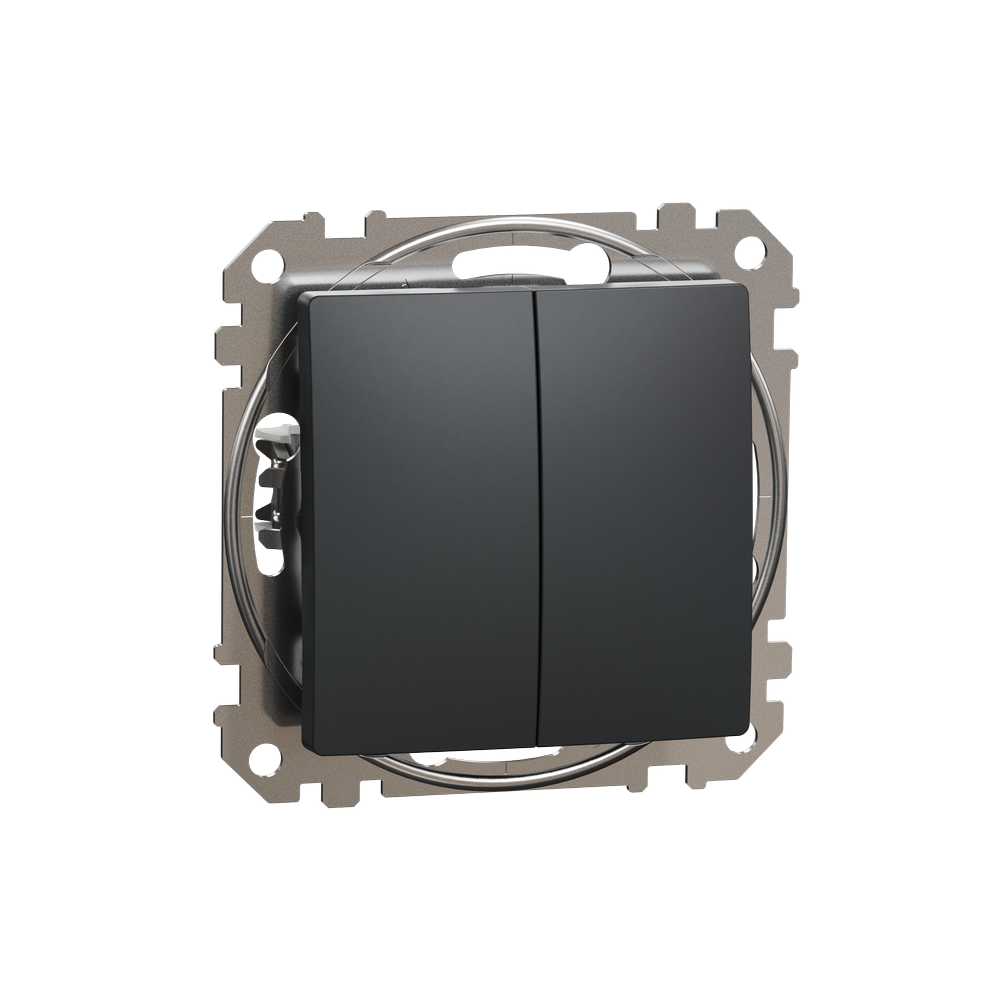 Двохклавішний вимикач є елементом серії Sedna Design & Elements SDD114105 від Schneider Electric. Будучи виготовленим із термопластичного матеріалу ABS-UV, цей вимикач досить надійний і стійкий. Глянцева поверхня чорного кольору створює відчуття елегантності в кімнаті. Її ширина 73 мм, висота 73 мм, глибина 37 мм, глибина виступу 24 мм. Вага виробу 0,064 кг. Клеми безгвинтові. Передбачено прихований монтаж. Спосіб кріплення вимикача - монтажні лапки, гвинти. Ступінь захисту IP20. Має знак якості CE. Повна відповідність стандарту IEC 60669-1. Закруглений профіль створює ілюзію, що вимикач знаходиться не врівень зі стіною, а наче перед нею, що додає дизайну легкості та елегантності. Sedna - електричні вимикачі нового покоління, які відповідають тенденціям моди та дизайну інтер’єру. Накладки та рамки можна комбінувати, щоб вони ідеально пасували до будь-якого стилю та оформлення Вашого дому.
