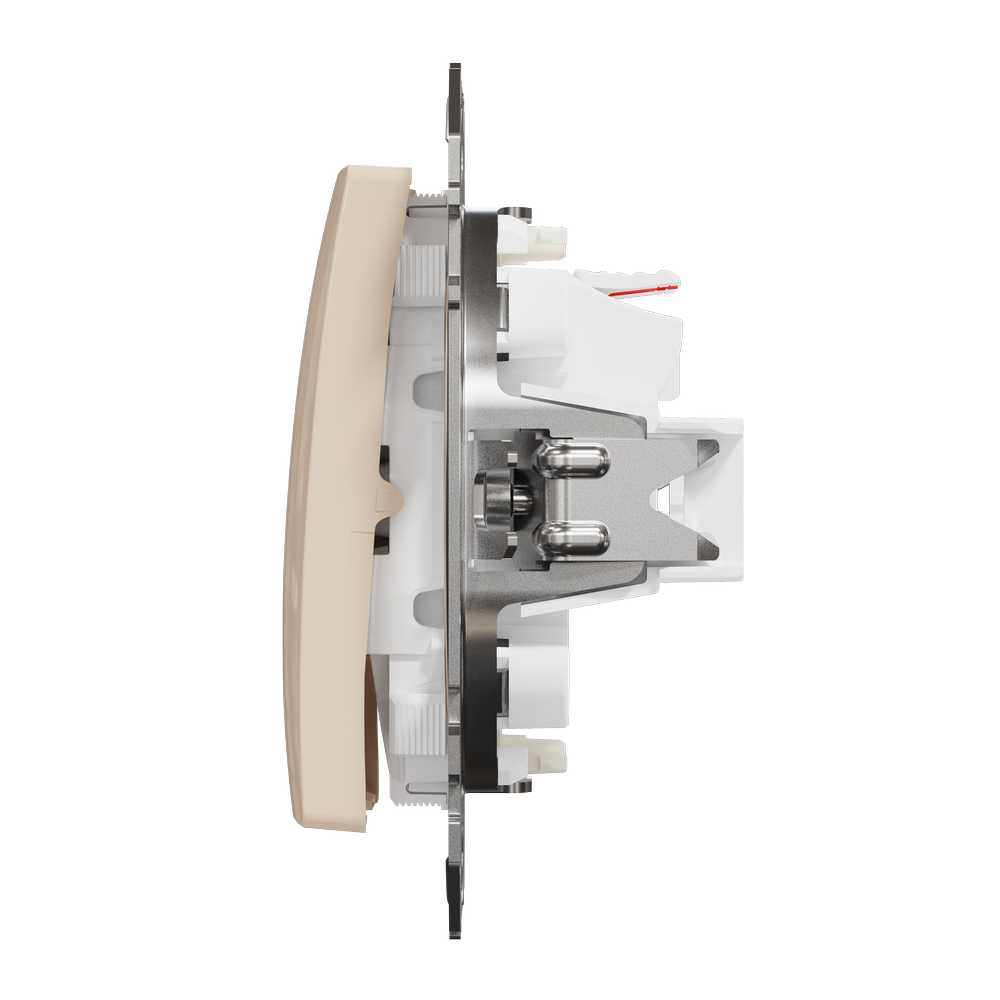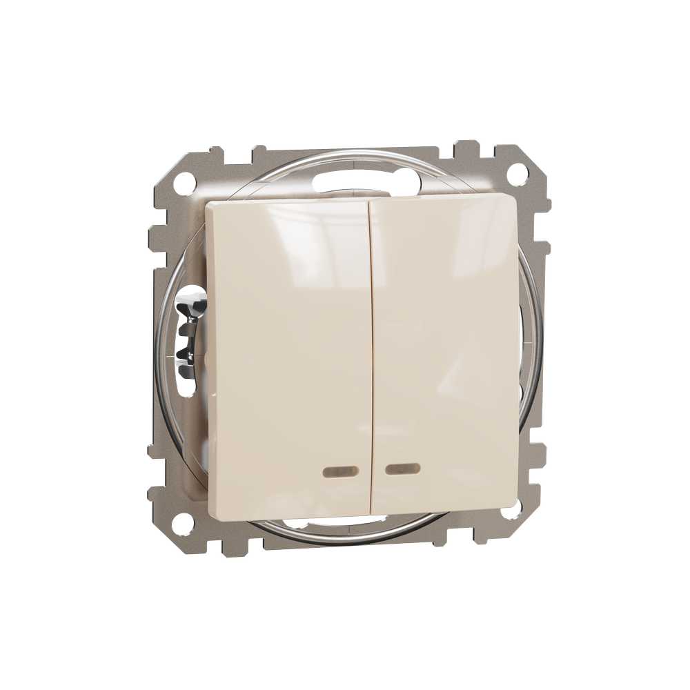 Двохклавішний вимикач з підсвіткою (механізм з супортом) має глянцевуповерхню бежевого кольору та такі розміри: ширина 73 мм, висота 73 мм, глибина 37 мм, глибина виступу 24 мм. Вага виробу 0,063 кг. Будучи виготовленим із термопластичного матеріалу ABS-UV, цей вимикач досить надійний і стійкий. Глянцева поверхня створює відчуття елегантності в кімнаті. Передбачено прихований монтаж. Спосіб кріплення вимикача - монтажні лапки, гвинти. Клеми безгвинтові Ступінь захисту IP20. Має знак якості CE. Повна відповідність стандарту IEC 60669-1. Закруглений профіль створює ілюзію, що вимикач знаходиться не врівень зі стіною, а наче перед нею, що додає дизайну легкості та елегантності. Sedna - електричні вимикачі нового покоління, які відповідають тенденціям моди та дизайну інтер’єру. Накладки та рамки можна комбінувати, щоб вони ідеально пасували до будь-якого стилю та оформлення Вашого дому. Примітка: продукти Sedna Design & Elements не сумісні з серією Sedna!