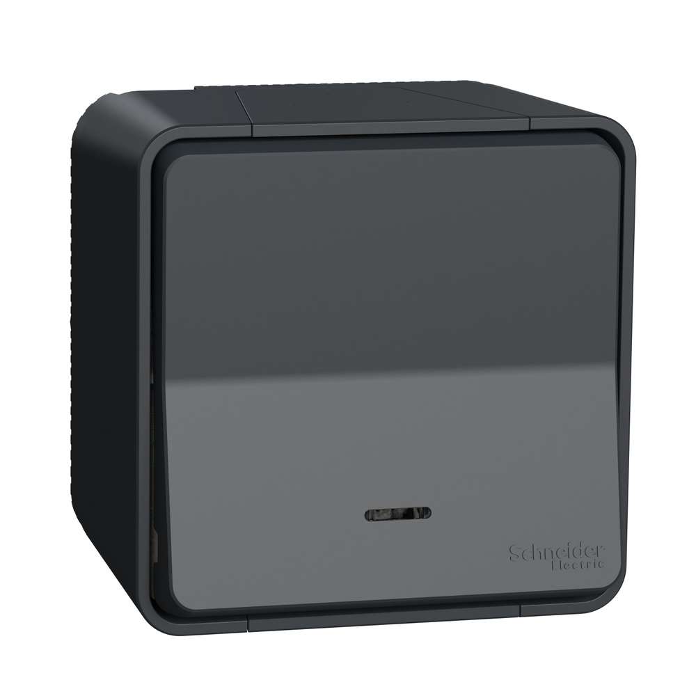 Кнопковий вимикач з підсвіткою у зборі IP55, для поверхневого монтажу, чорний, Mureva Styl Schneider Electric MUR35028