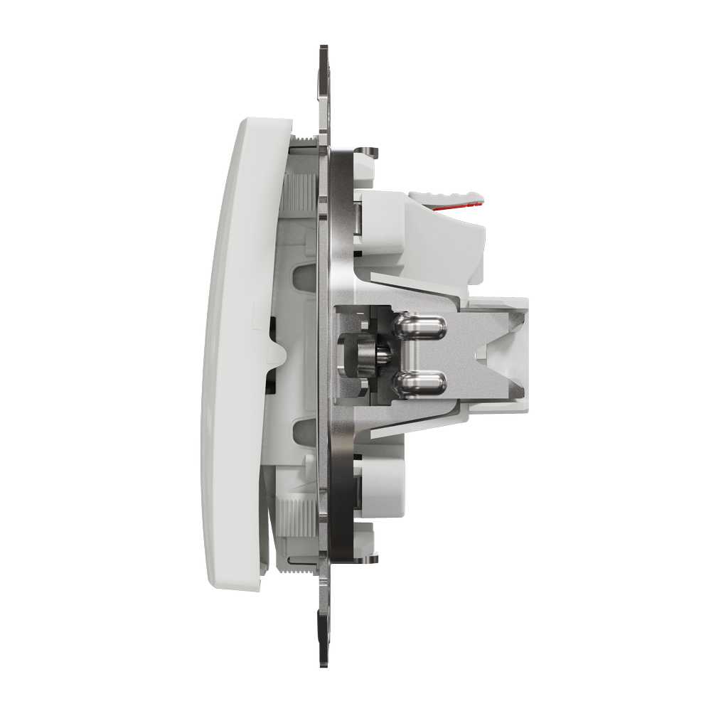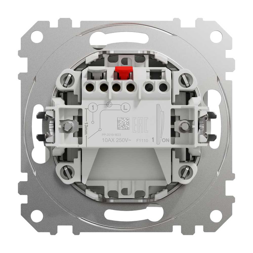Одноклавішний вимикач 1-полюсний (механізм з супортом) має глянцеву білу поверхню та такі розміри: ширина 73 мм, висота 73 мм, глибина 37 мм, глибина виступу 24 мм. Вага виробу 0,061 кг. Будучи виготовленим із термопластичного матеріалу ABS-UV, цей вимикач досить надійний і стійкий. Глянцева поверхня створює відчуття елегантності в кімнаті. Передбачено прихований монтаж. Спосіб кріплення вимикача - монтажні лапки, гвинти. Клеми безгвинтові Ступінь захисту IP20. Має знак якості CE. Повна відповідність стандарту IEC 60669-1. Закруглений профіль створює ілюзію, що вимикач знаходиться не врівень зі стіною, а наче перед нею, що додає дизайну легкості та елегантності. Примітка: продукти Sedna Design & Elements не сумісні з серією Sedna!
