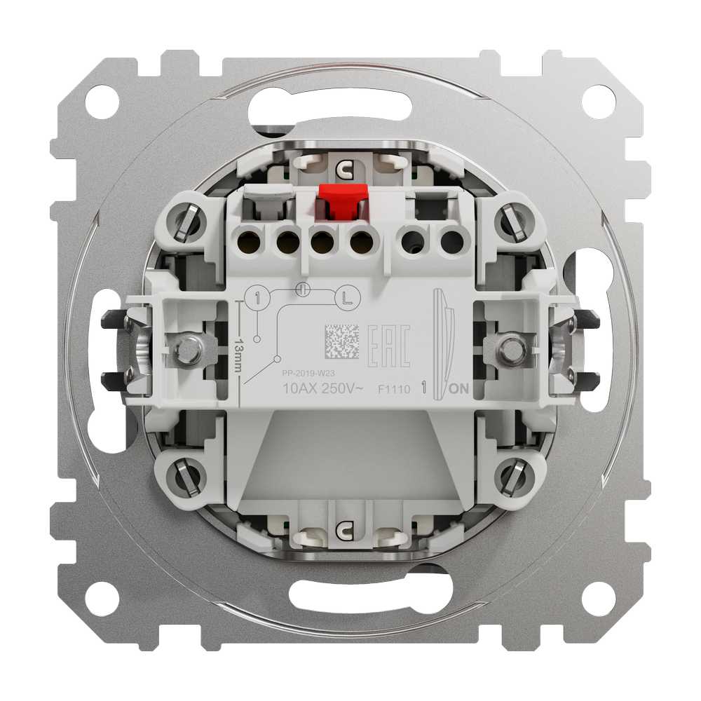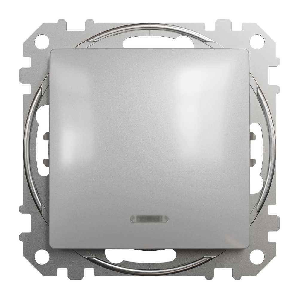 Одноклавішний вимикач 1-полюсний (механізм з супортом) з підсвіткою має глянцеву поверхню кольору Алюміній та такі розміри: ширина 73 мм, висота 73 мм, глибина 37 мм, глибина виступу 24 мм. Вага виробу 0,061 кг. Будучи виготовленим із термопластичного матеріалу ABS-UV, цей вимикач досить надійний і стійкий. Глянцева поверхня створює відчуття елегантності в кімнаті. Передбачено прихований монтаж. Спосіб кріплення вимикача - монтажні лапки, гвинти. Клеми безгвинтові Ступінь захисту IP20. Має знак якості CE. Повна відповідність стандарту IEC 60669-1. Закруглений профіль створює ілюзію, що вимикач знаходиться не врівень зі стіною, а наче перед нею, що додає дизайну легкості та елегантності. Синя LED підсвітка загоряється коли вимикач вимкненний.Примітка: продукти Sedna Design & Elements не сумісні з серією Sedna!