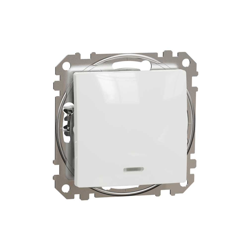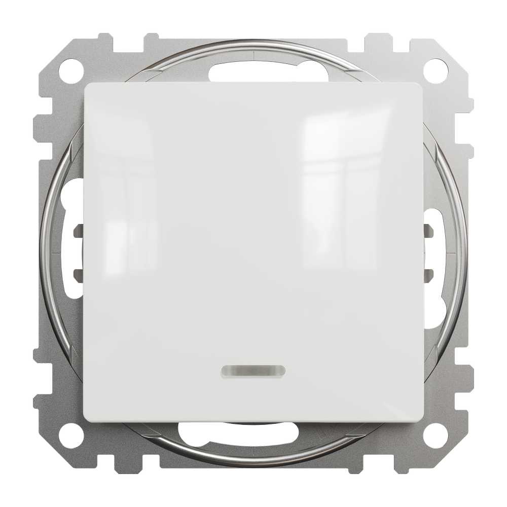 Одноклавішний вимикач 1-полюсний (механізм з супортом) з підсвіткою має глянцеву білу поверхню та такі розміри: ширина 73 мм, висота 73 мм, глибина 37 мм, глибина виступу 24 мм. Вага виробу 0,061 кг. Будучи виготовленим із термопластичного матеріалу ABS-UV, цей вимикач досить надійний і стійкий. Глянцева поверхня створює відчуття елегантності в кімнаті. Передбачено прихований монтаж. Спосіб кріплення вимикача - монтажні лапки, гвинти. Клеми безгвинтові Ступінь захисту IP20. Має знак якості CE. Повна відповідність стандарту IEC 60669-1. Закруглений профіль створює ілюзію, що вимикач знаходиться не врівень зі стіною, а наче перед нею, що додає дизайну легкості та елегантності. Синя LED підсвітка загоряється коли вимикач вимкненний.Примітка: продукти Sedna Design & Elements не сумісні з серією Sedna!