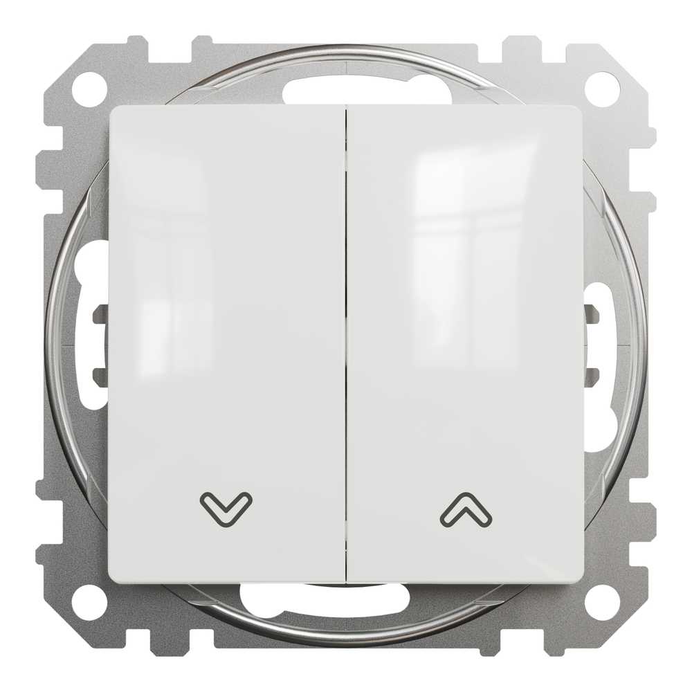 Вимикач для жалюзі ( в комплекті механізм+накладка+супорт) є аксесуаром серії Sedna Design & Elements від Schneider Electric. Накладка вимикача має глянцеву білу поверхню та має такі розміри: ширина 73 мм, висота 73 мм, глибина 37 мм, глибина виступу 24 мм. Довжина ізоляції, знятої з кабелю, становить 13 мм. Вимикач характеризується ступенем захисту IP20 і діапазоном потужності 2300 Вт. Для виготовлення вимикача використовувався термопластичний матеріал з підвищеною стійкістю до УФ-випромінювання. Виріб монтується впритул і має безгвинтові клеми. Примітка: продукти Sedna Design & Elements несумісні з серією Sedna!
