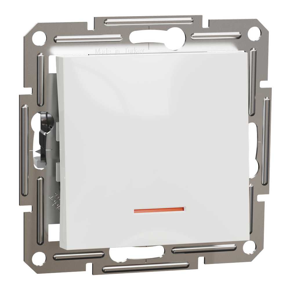 Вимикач з підсвіткою Schneider Electric Asfora EPH1470121 , механізм із супортом та накладкою білого кольору з 1 клавішею. Це 1-полюсний вимикач зі світлодіодом, який допомагає ідентифікувати пристрій. Фіксація пристрою за допомогою гвинтів та монтажних лапок. Номінальний струм 10AX, діапазон потужності 2300 Вт. Розміри вимикача: (Ш) 71 мм x (В) 71 мм x (Г) 43 мм, глибина встановлення 15 мм. Пристрій може бути встановленний приховано. Поверхня вимикача глянцева, що надає приміщенню елегантного та вишуканого вигляду. Ступінь захисту IP20. Оснащений безгвинтовими клемами. Вимикач виготовлений з ABS (акрилонітрил-бутадієн-стирол) матеріалу, що робить його максимально стійким. Мідний провідниковий матеріал забезпечує надійність. Вимикач отримав сертифікати TSE, VDE. Вимикач відповідає стандарту МЕК 60669-1. Має знак якості CE, UKR. Оновлена фурнітура Asfora тепер має менші, компактніші накладки, профільовану фіксуючу рамку, а також широкі, профільовані монтажні лапки з поворотною пружиною, тим самим покращуючи якість та функціональність пристроїв. Продукція Asfora виготовлена з високоякісних матеріалів, які не жовтіють з часом. Витончений, елегантний дизайн ідеально гармонує з будь-яким інтер'єром.