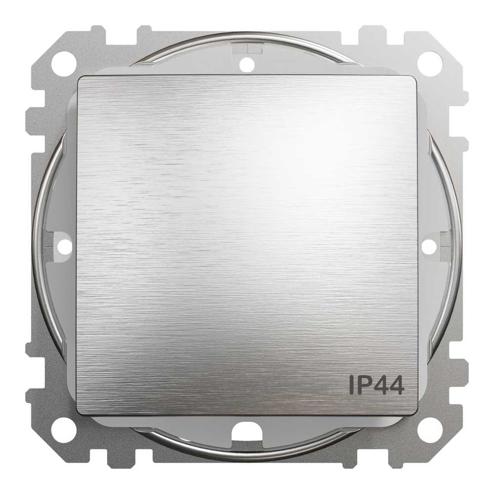 Одноклавішний перемикач IP44, Матовий Алюміній, є аксесуаром серії Sedna Design & Elements від Schneider Electric. Вимикач має матову алюмінієву поверхню та такі розміри: ширина 73 мм, висота 73 мм, глибина 38 мм, глибина виступу 24 мм. Довжина ізоляції, знятої з кабелю, становить 13 мм. Вимикач характеризується ступенем захисту IP44 та діапазоном потужності 2300 Вт. Для виготовлення вимикача використовувався термопластичний матеріал з підвищеною стійкістю до УФ-випромінювання. Виріб монтується впритул і має гвинтові клеми. Пристрій можна використовувати як традиційний вимикач світла або використовувати для ввімкнення інших пристроїв з максимальним споживанням струму до 10 AX в установках, де необхідно керувати одним джерелом світла з 2 різних точок. Примітка: продукти Sedna Design & Elements несумісні з серією Sedna!