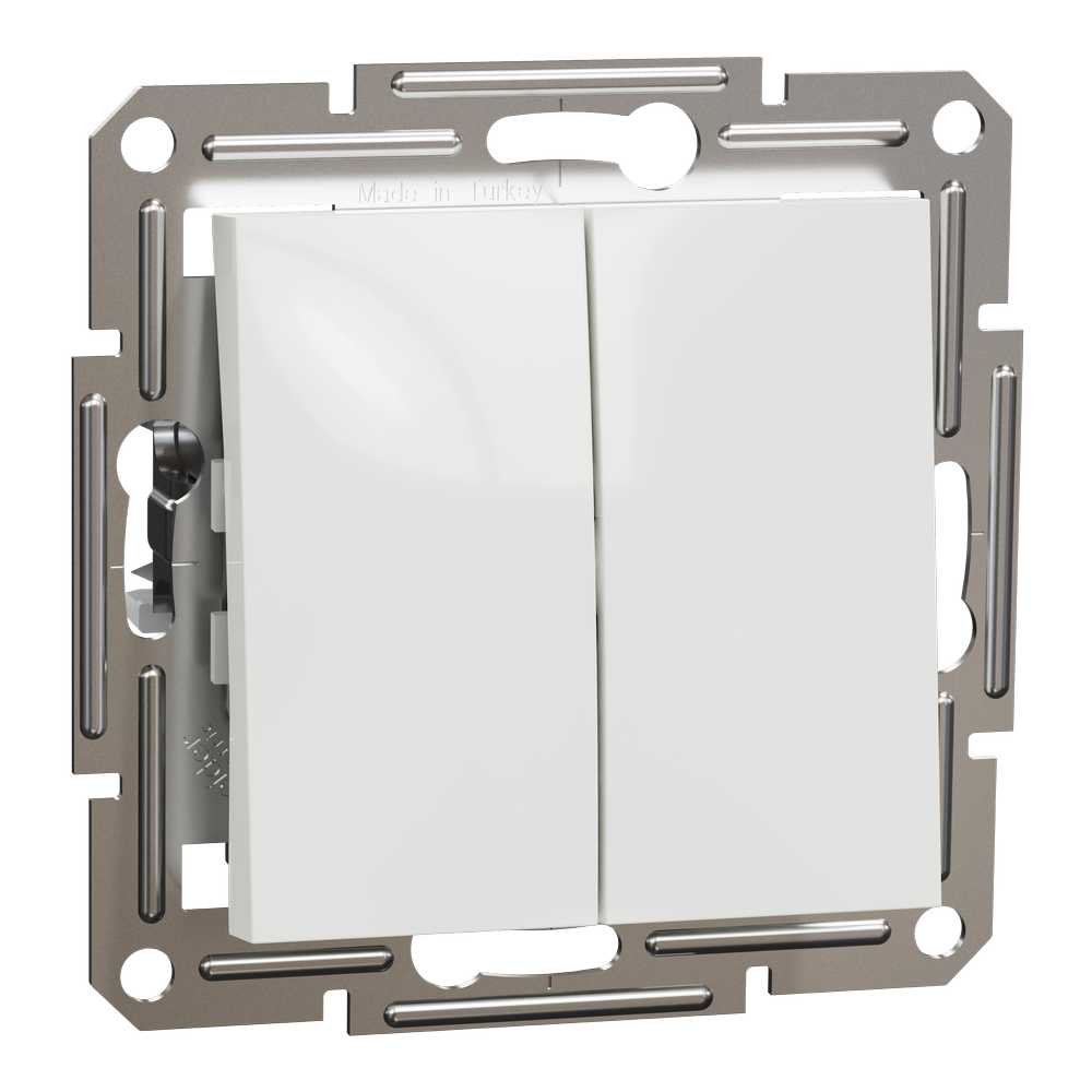 Перемикач двоклавішний Schneider Electric Asfora EPH0670121, механізм із супортом та накладкою білого кольору з 2 клавішами. Це 1-полюсний перемикач. Фіксація пристрою за допомогою гвинтів та монтажних лапок. Номінальний струм 10AX, діапазон потужності 2300 Вт. Розміри перемикача: (Ш) 71 мм x (В) 71 мм x (Г) 43 мм, глибина встановлення 15 мм. Пристрій може бути встановленний приховано. Поверхня перемикача глянцева, що надає приміщенню елегантного та вишуканого вигляду. Ступінь захисту IP20. Оснащений безгвинтовими клемами. Перемикач виготовлений з ABS (акрилонітрил-бутадієн-стирол) матеріалу, що робить його максимально стійким. Мідний провідниковий матеріал забезпечує надійність. Перемикач отримав сертифікати TSE, VDE. Перемикач відповідає стандарту МЕК 60669-1. Має знак якості CE, UKR. Оновлена фурнітура Asfora тепер має менші, компактніші накладки, профільовану фіксуючу рамку, а також широкі, профільовані монтажні лапки з поворотною пружиною, тим самим покращуючи якість та функціональність пристроїв. Продукція Asfora виготовлена з високоякісних матеріалів, які не жовтіють з часом. Витончений, елегантний дизайн ідеально гармонує з будь-яким інтер'єром.