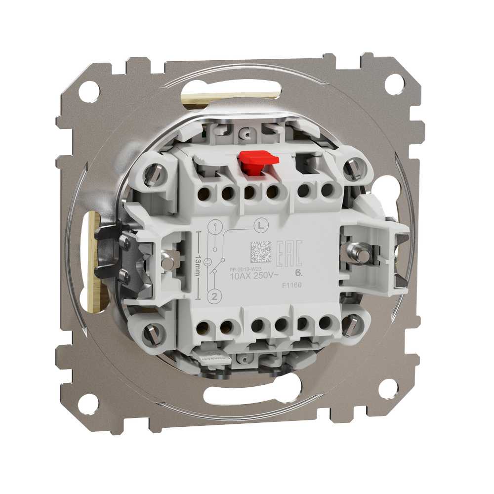 Одноклавішний перемикач з LED підсвіткою синього кольору є елементом серії Sedna Design & Elements від Schneider Electric. Пристрій має сатинову поверхню кольору Береза, який ідеально імітує натуральні матеріали та такі розміри: ширина 73 мм, висота 73 мм, глибина 37 мм, глибина виступу 24 мм. Довжина ізоляції, знятої з кабелю, становить 13 мм. Вимикач характеризується ступенем захисту IP20 і діапазоном потужності 2300 Вт. Для виготовлення вимикача використовувався термопластичний матеріал з підвищеною стійкістю до УФ-випромінювання. Виріб монтується впритул та має гвинтові клеми. Пристрій можна використовувати як традиційний вимикач світла або використовувати для ввімкнення інших пристроїв з максимальним споживанням струму до 10 AX в установках, де необхідно керувати одним джерелом світла з 2 різних точок. Примітка: продукти Sedna Design & Elements несумісні з серією Sedna!