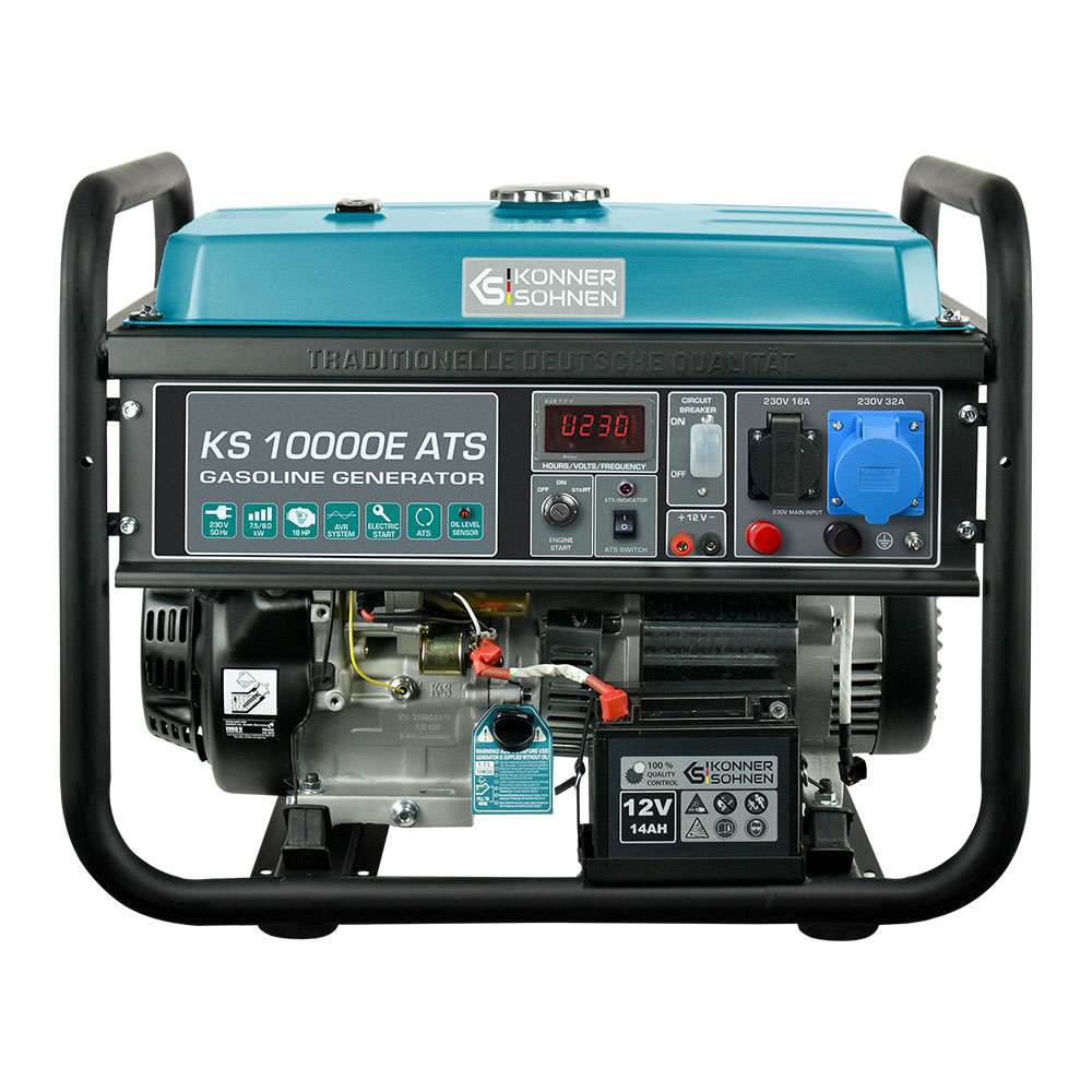 Однією з унікальних особливостей моделі генератора KS 10000E ATS з електрозапуском є функція ATS (АВР — автоматичне введення резерву). Ця функція дозволяє генератору автоматично включатися в момент відключення світла, а потім автоматично вимикатися в момент повернення електроживлення. Вона необхідна в разі використання об’єкту жінками або літніми людьми, при від’їздах, на об’єктах із суворим температурним або світловим режимом. У моделях інших брендів для виконання даної функції необхідно купувати громіздке, дороге обладнання, яке потребує додаткової, складної установки. У нашому випадку блок вже встановлений в генератор, інсталяція такого генератора максимально спрощена, а вартість даних моделей торгової марки «K?nner & S?hnen» є доступною для будь-якого гаманця.