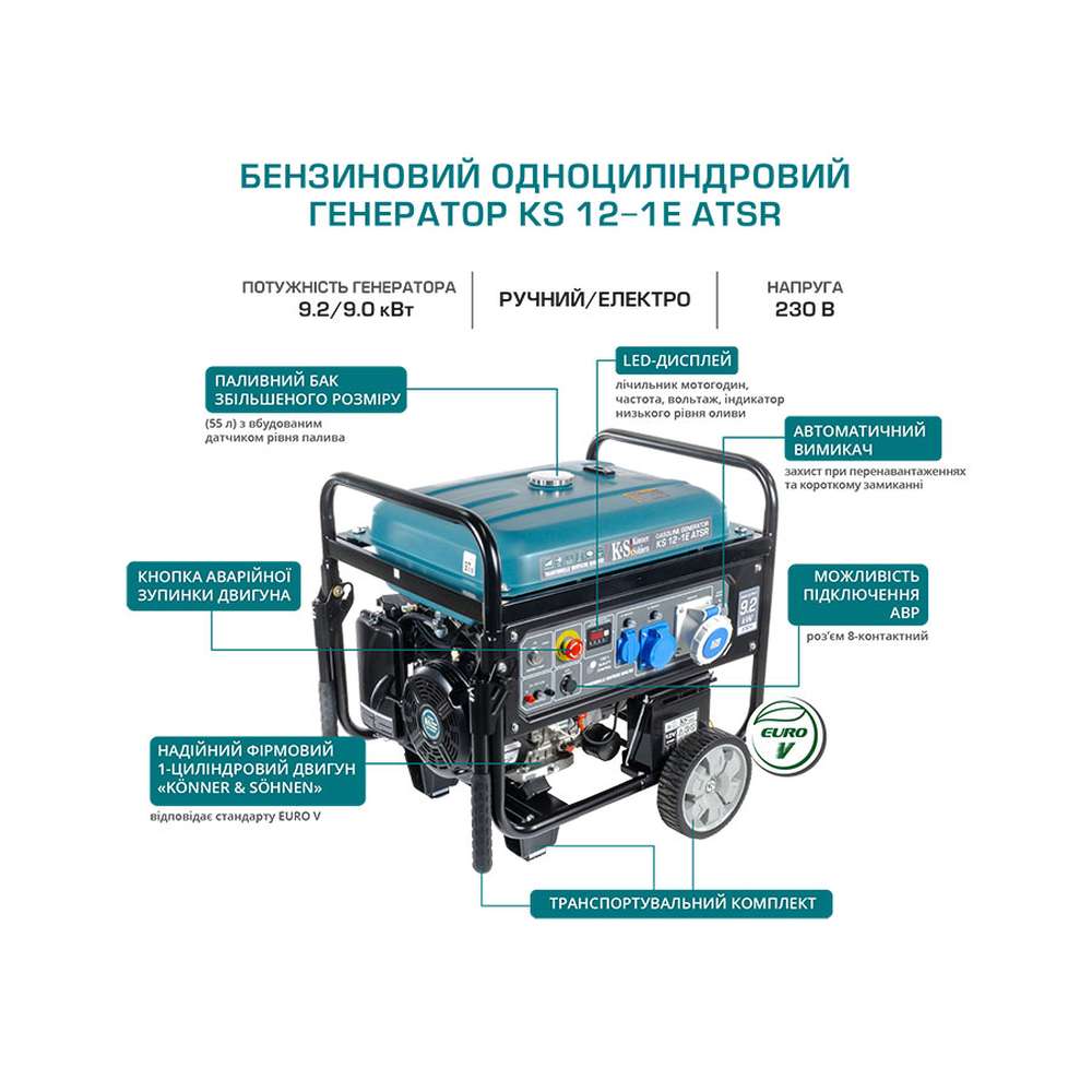 Модель генератора KS 12-1E ATSR — це бензиновий генератор з максимальною потужністю на одному циліндрі!