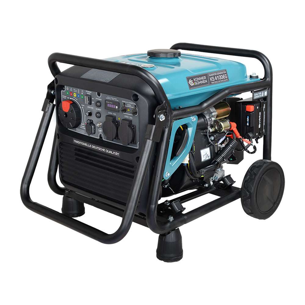 Генератор KS 4100iE G німецької ТМ «K?nner & S?hnen» — це зручне джерело електроенергії. Вбудований електронний блок з мікропроцесорним управлінням контролює роботу генератора і забезпечує фіксовану частоту 50 Гц і напругу 230В.