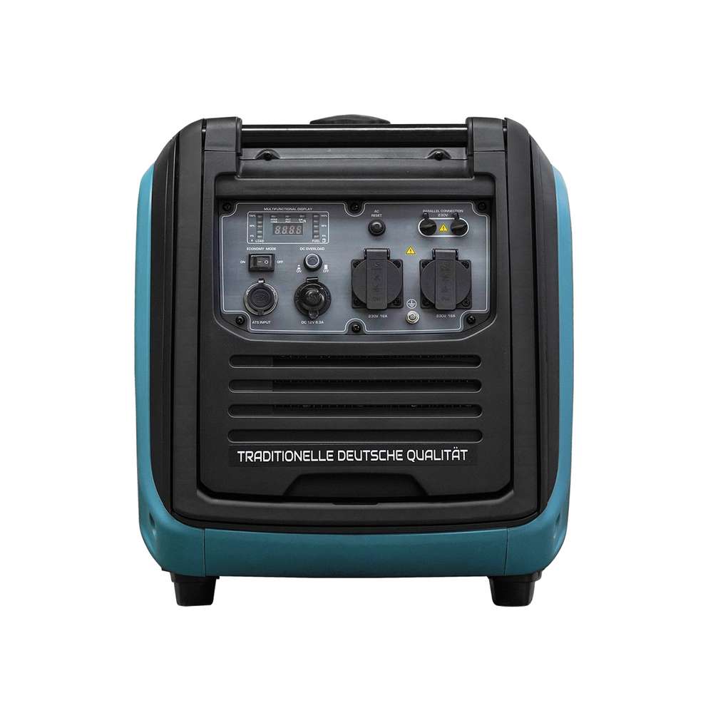Зручне розташування усіх функцій: індикатори стану генераторної установки, що сигналізують про робочий режим, спрацювання автомату захисту при перевантаженні або короткому замиканні, про низький рівень оливи, кнопка Reset для перезавантаження системи контролю та відновлення подачі напруги, роз’єм для паралельного підключення генераторів, типова автомобільна розетка 12В, що дає можливість підключення широкого спектру автомобільних пристроїв, гаджетів та зарядки акумулятору, розетки 230В та клема заземлення.