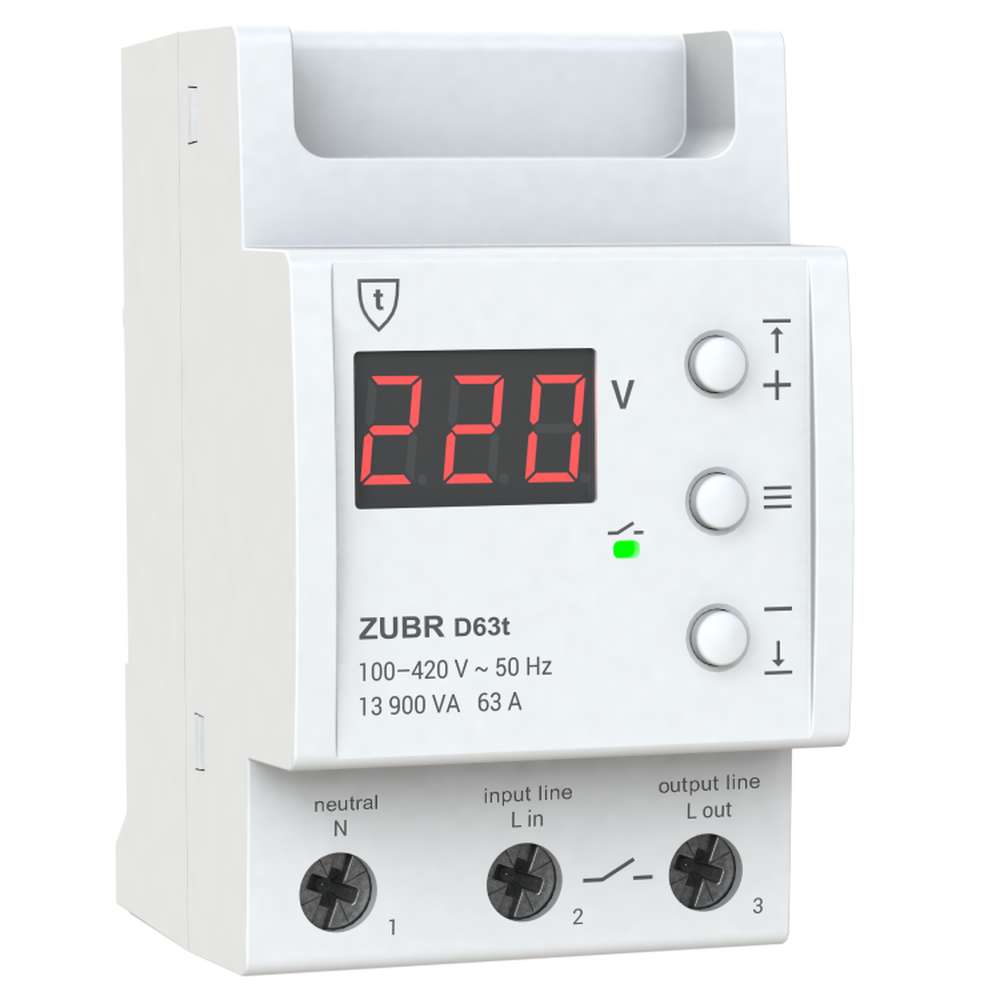 ZUBR D25-63 (t) voltage relays are designed to protect the equipment from excessive voltage fluctuations. They are equipped with thermal protection and a professional model of switching off the load at safe voltage deviations. You can set the on delay until voltage stabilizes.