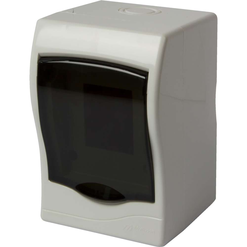 Корпус выполнен из не поддерживающего горения АВS—пластика, с затемненной дверцей.Степень защиты — IP30.