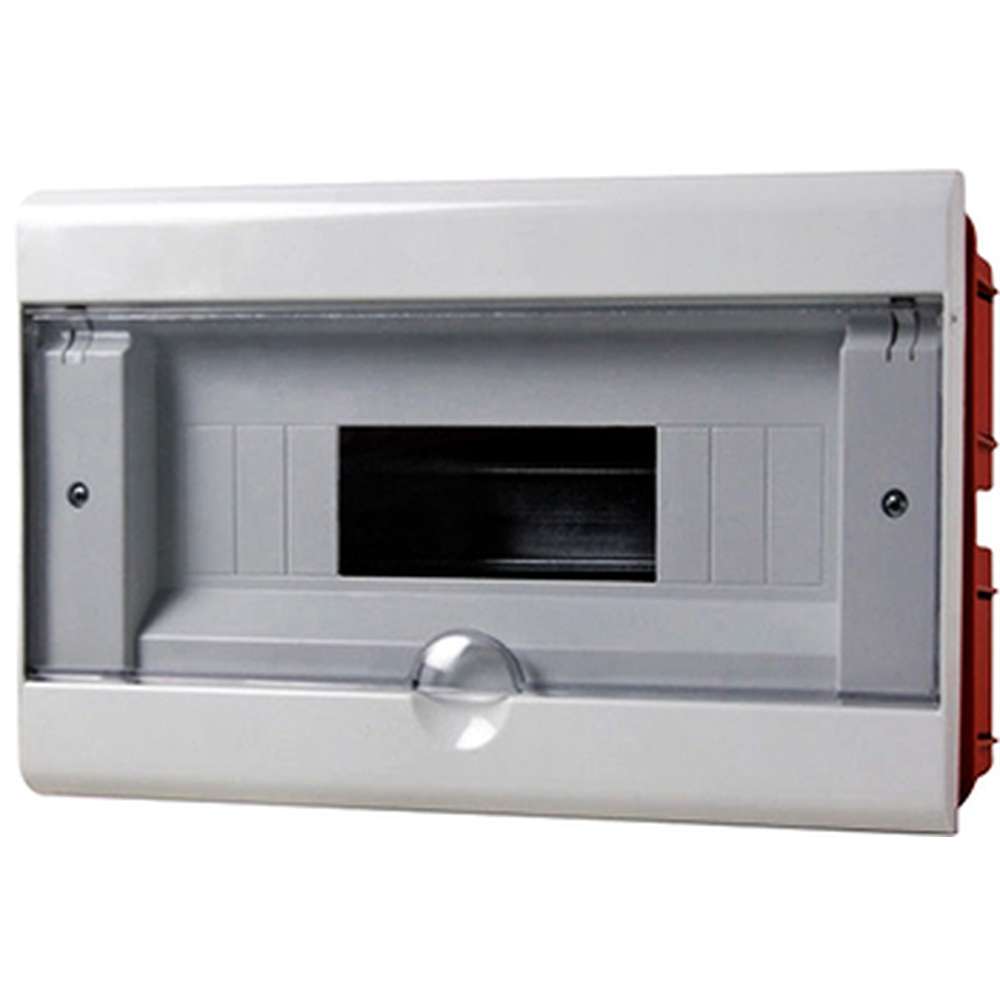 Корпус пластиковый 8-модульный, встраиваемого исполнения, с дверкой.