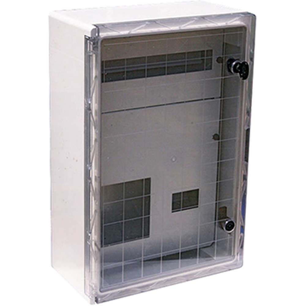 Шкаф ударопрочный из АБС-пластика, навесного исполнения с прозрачной дверцей под 3 - фазный счетчик и 20 модулей.
