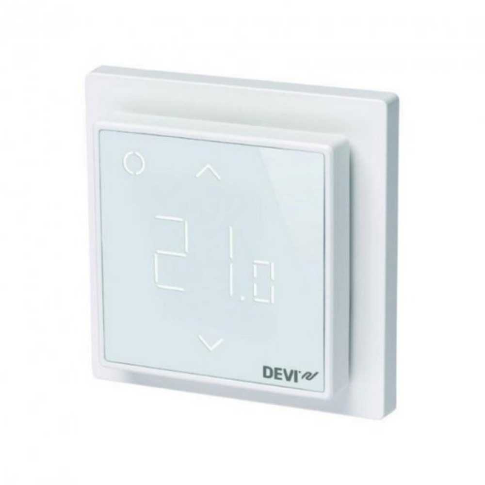 Інтелектуальний електронний терморегулятор з таймером і можливістю підключення до мережі Wi-Fi і управлінням за допомогою мобільного телефону через додаток DEVIsmart. Можливість підключити до 10 мобільних пристроїв + необмежену кількість терморегуляторів DEVIreg ™ Smart, які можуть управлятися з одного смартфона або планшета. Сенсорний дисплей з підсвічуванням, просте меню, майстер настройки з можливістю вибору типу приміщення і покриття підлоги, сумісність з датчиками температури підлоги (NTC) інших виробників, управління: PWM (широтно-імпульсна модуляція), температура захисту від замерзання: від + 5 ° C до + 9 ° C (заводська установка + 5 ° C), контроль несправності датчика. Колір білий.